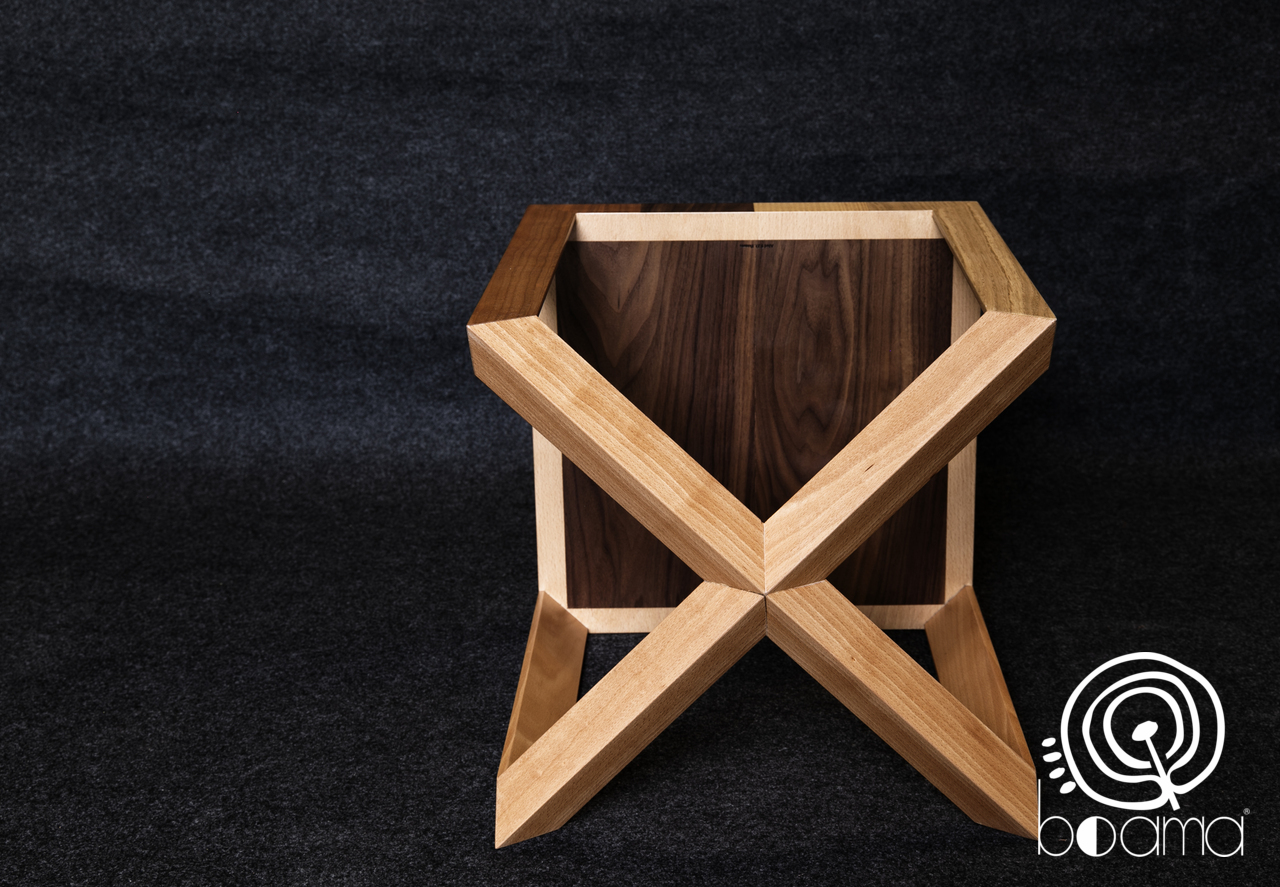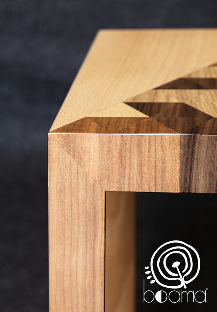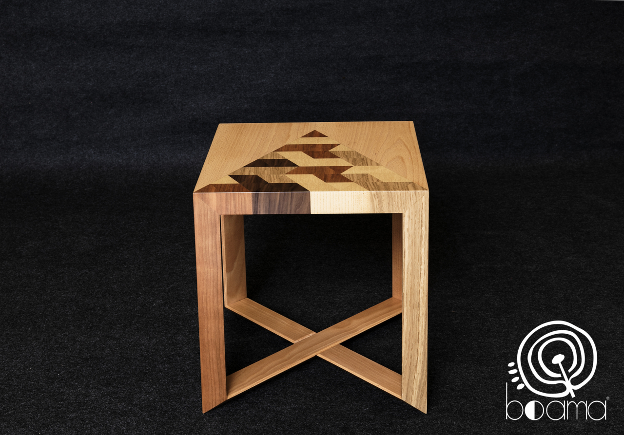 Mesa auxiliar madera de haya vaporizada con taracea en nogal, fresno, roble y cerezo