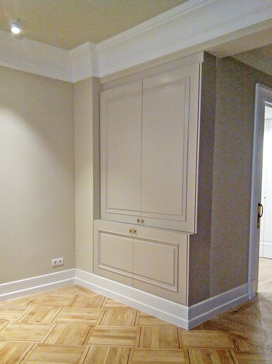 Alacena fabricada a medida y lacada en el mismo RAL de la pared.