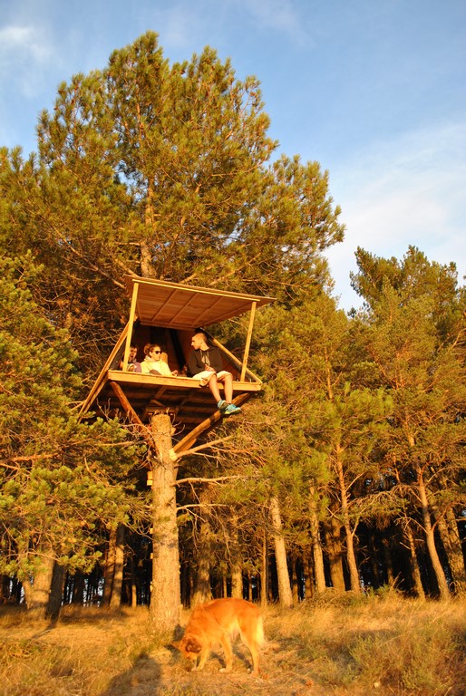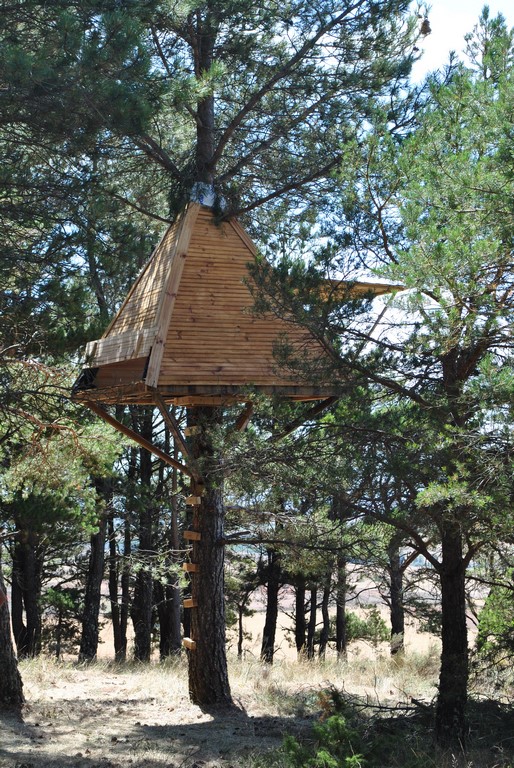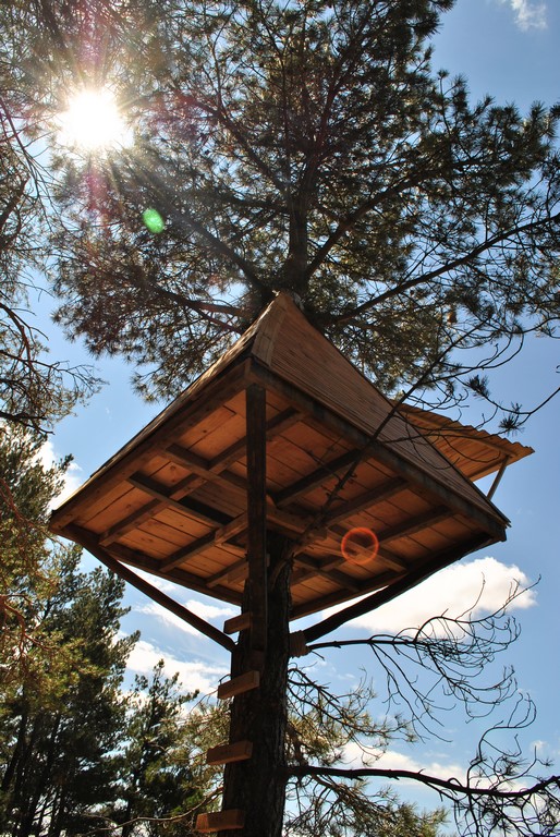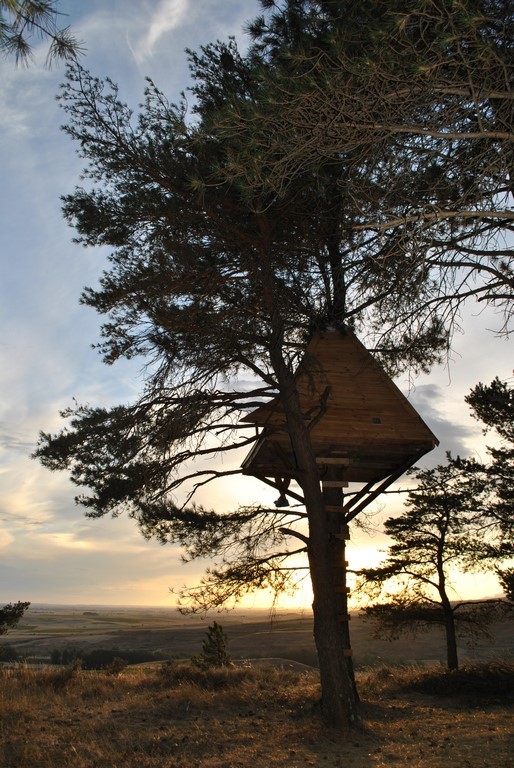 Este es un proyecto realizado con maderas recicladas de Olmo y Pino y esta proyectada a medida. Desde ese precioso pinar Burgalés se disfrutan unos atardeceres espectaculares que desde lo alto de un árbol se vuelven de cuento. Es un alto en que sopla el "cierzo" con fuerza, por lo que se construyo con forma piramidal para ofrecer menor resistencia y mayor durabilidad del conjunto. El acceso es desde una escalera fijada al propio tronco y dispone de un ventanuco en la parte trasera para poder observar desde las alturas los corzos y jabalíes que suben al pinar a buscar alimentos.
