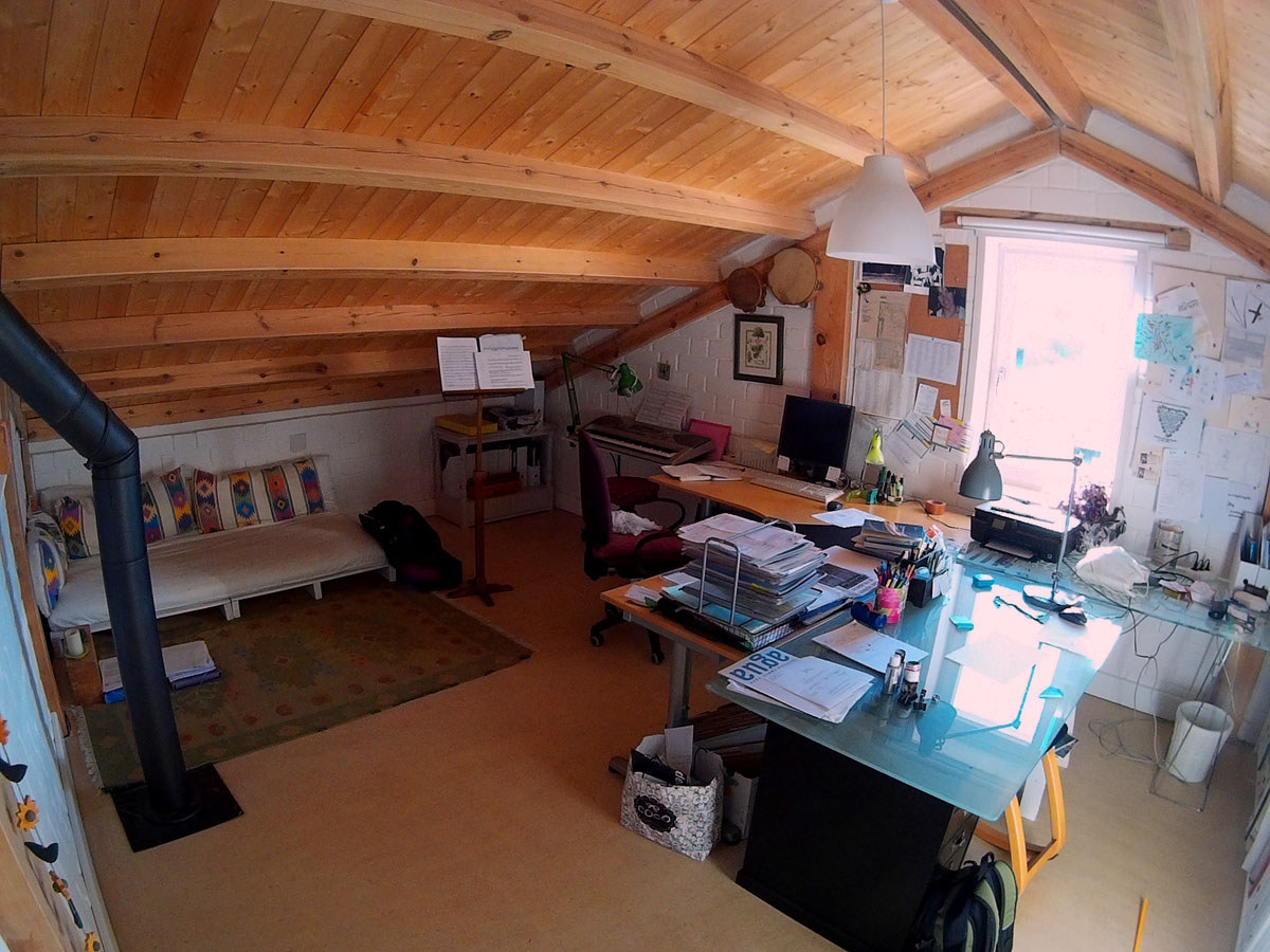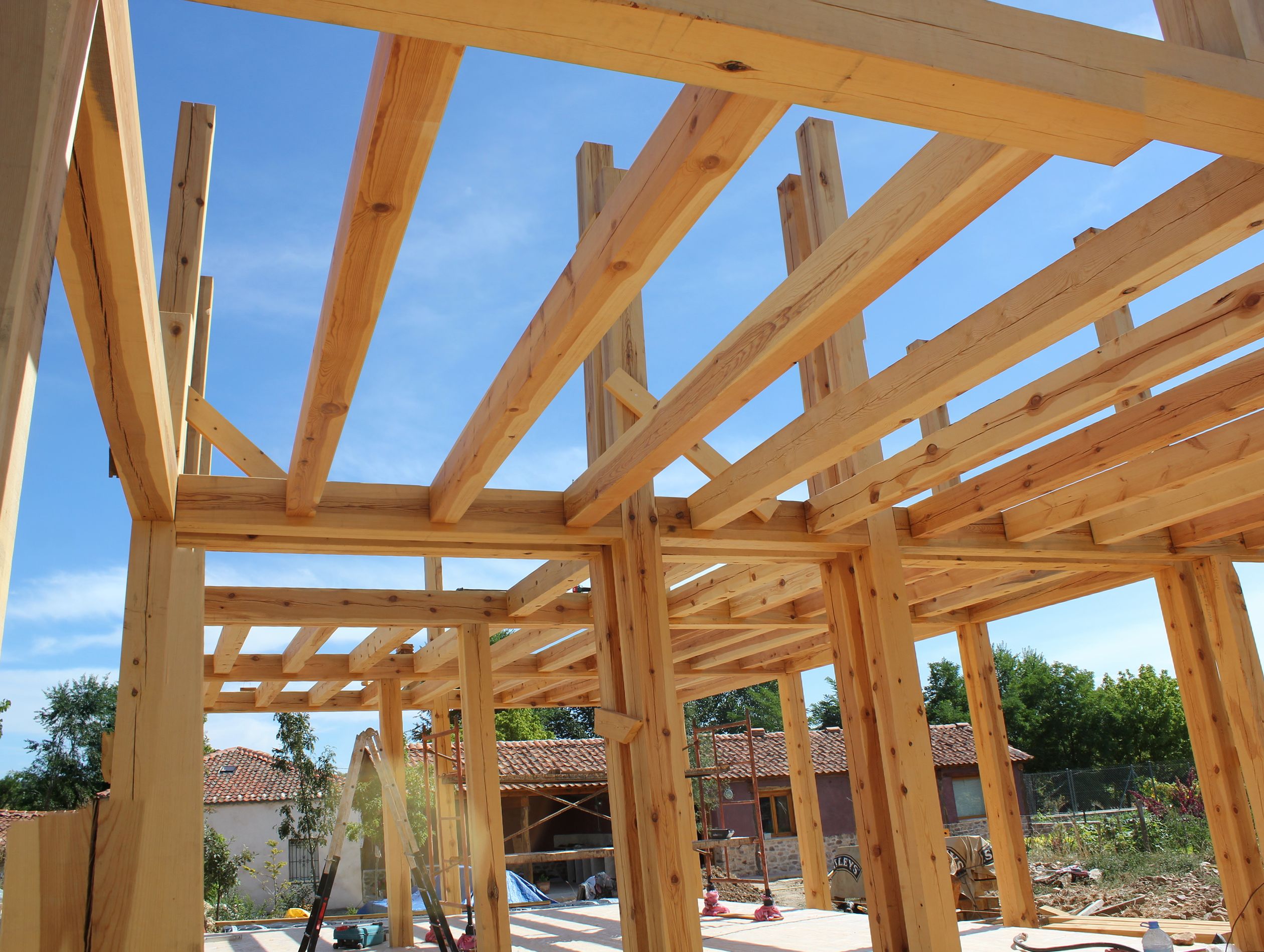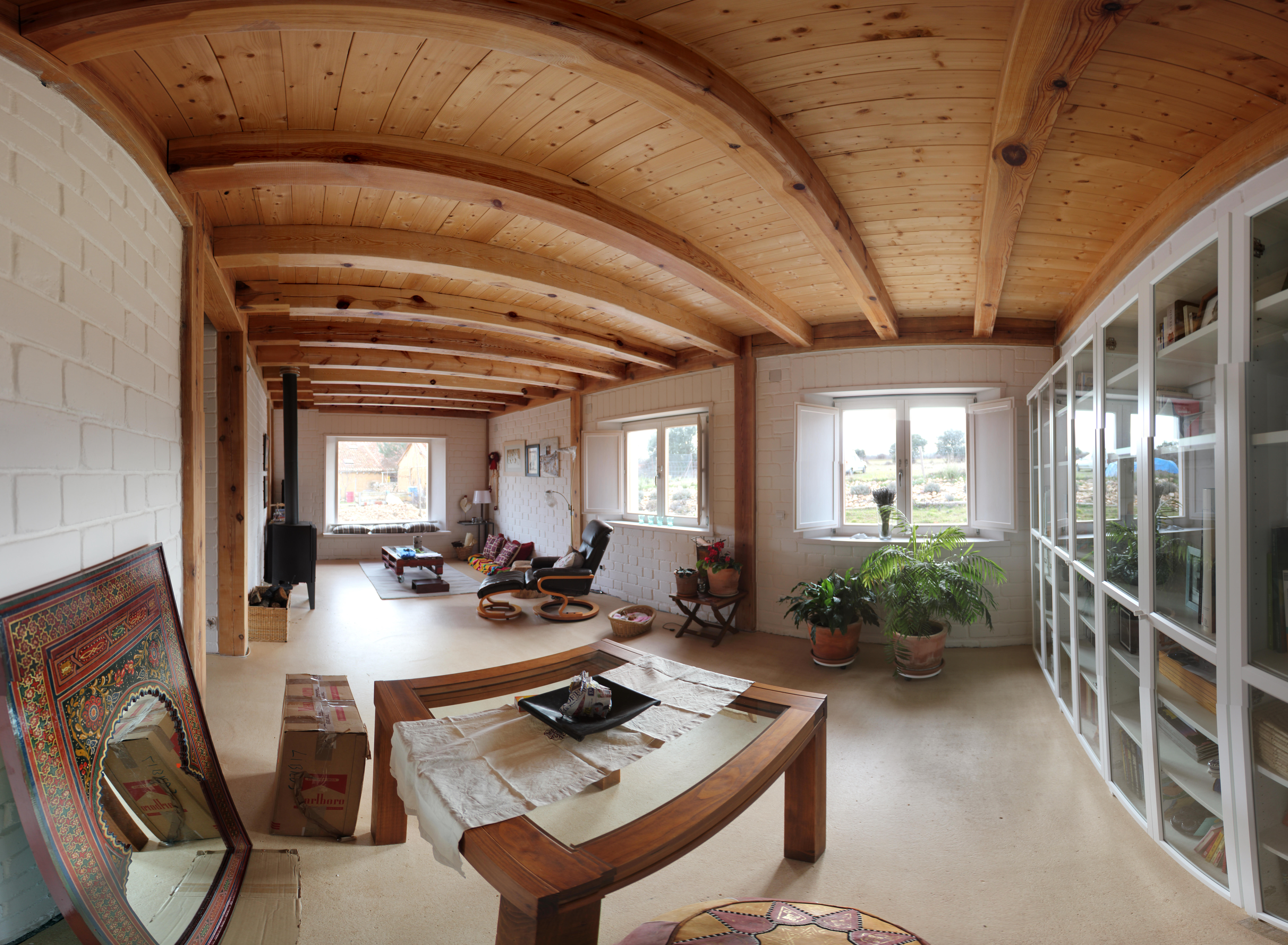 Casa Folk fue un proyecto de obra nueva, que combinaba perfectamente los gustos constructivos de Sara y Rafa. Se utilizaron materiales como la madera aserrada, en generosas escuadrías rectangulares y cuadradas, junto con elementos tales como los bloques de tierra comprimida, aislamiento de corcho natural y la terminación de suelos en anhidrita. En ella se respira ya lo natural y se percibe el confort de la bio-construcción, diseñada, confeccionada y ensamblada para resistir el más duro invierno de la Segovia más fría.