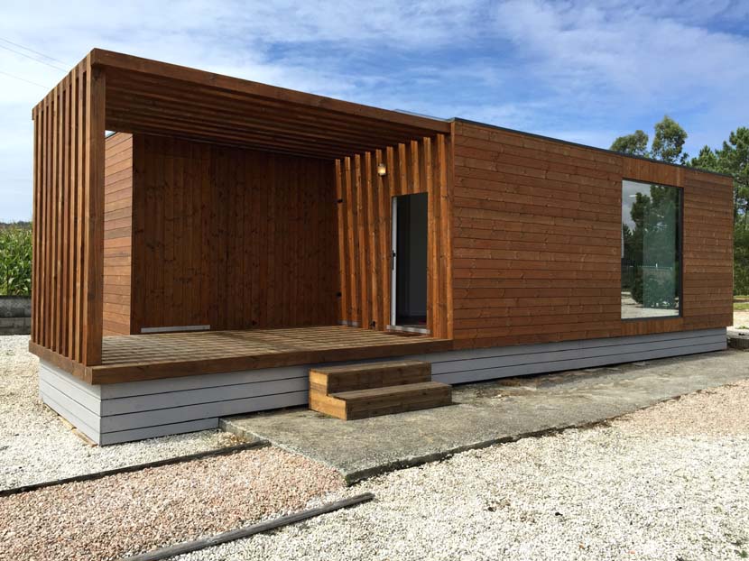 Vivienda prefabricada modular de 48 m2. Transportable, fabricada sobre estructura de acero y entramado ligero de madera.