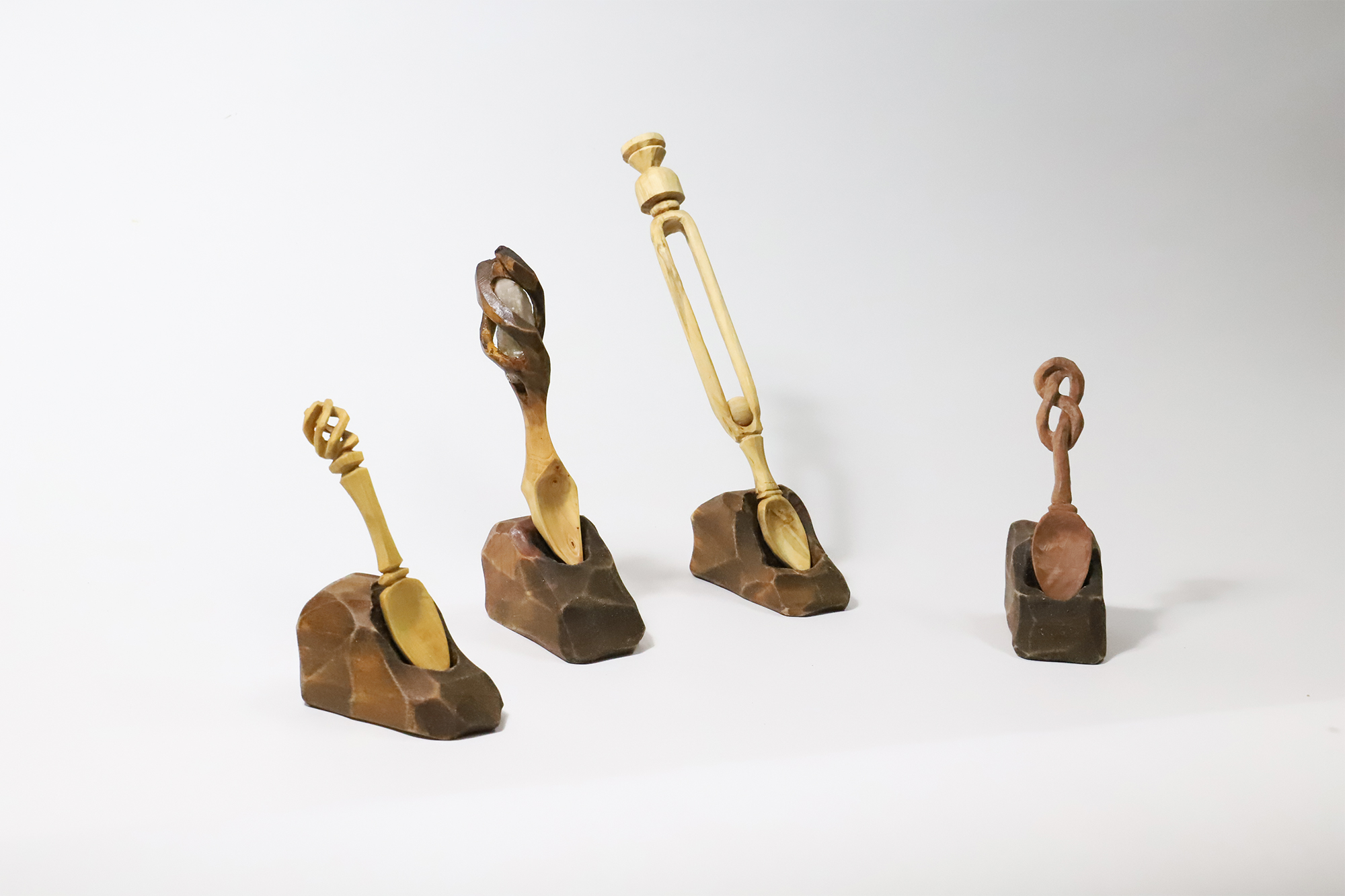 Colección de cucharas únicas talladas a mano con base. Están realizadas en diferentes maderas como boj, tejo ( con incrustación de punta de cuarzo) y níspero. Acabado con cera natural apta para el uso alimentario lo que le da mucha suavidad y la hace agradable al tacto.