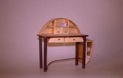 Escritorio secreter laminada curvada al agua y con diseño ergonómico integrado en su estilo artístico y estético de curvas minimalistas pero funciona-listas al mismo tiempo.