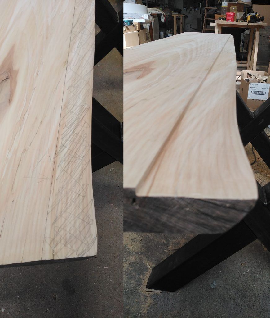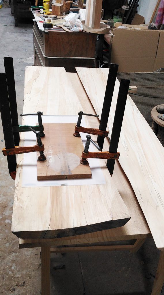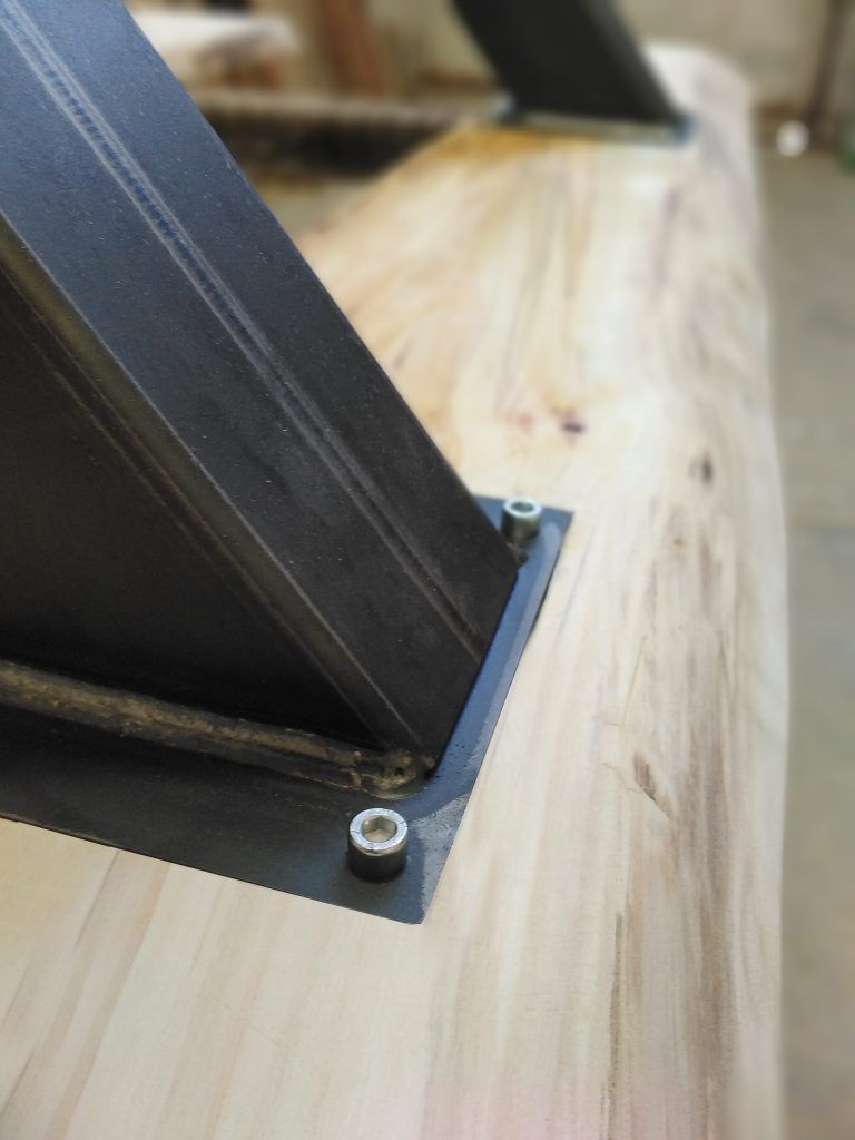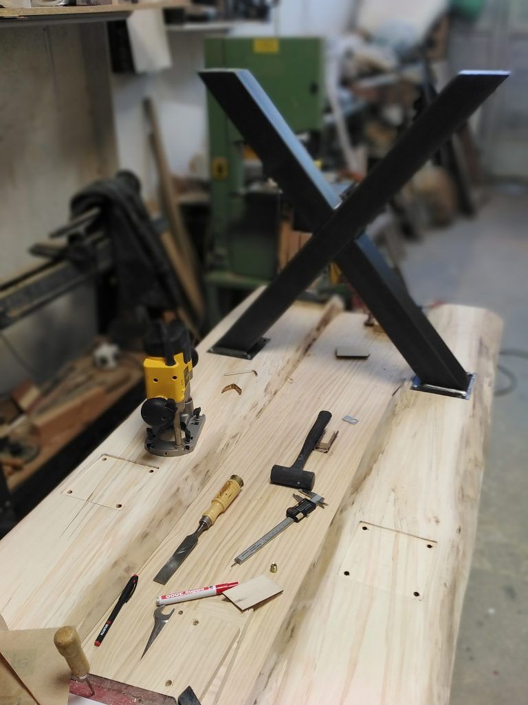Encargo ejecutivo de mesa de diseño contemporáneo -hecha a medida-, en madera de álamo de Finlandia. (145x83x75h cms) Proyecto comisionado por ese raro y maravilloso tipo de cliente con la idea perfectamente clara y estudiada para concentrar la energía solo en la realización, y llevado a cabo en estrecha colaboración y comunicación durante su desarrollo. Estructura de acero en acabado pavonado, en la tendencia actual de las mesas llamadas “river table live edge” completada por tapa compuesta de 2 tablas de álamo de Finlandia (Populus tremula), aunadas por cristal de 3+3 mm laminado de seguridad, encajado a ras perfecto de la madera. El encaje de las pletinas de apoyo por debajo de las tablas unidas por tornillos con tuerca empotrada, le han dado una solidez increíble. (en un principio tenía mis dudas, pero se despejaron solas). Este detalle constructivo, permitirà además el desmontar la mesa decenas de veces sin perder su solidez. Esta madera ha resultado ser una de las maderas más agradecidas que he podido trabajar, maleable y homogénea, que entre la veta y las características marcas dejadas por los inocuos hongos cromógenos (Hongo spalted), surgidas después del cepillado y calibrado, la muestran en toda su espectacularidad. Después de su acabado final, -exclusivamente a base de aceite de Tung-, le ha proporcionado su tono natural multicolor desde tonos arena y ocre a los intensos rosas asalmonados mezclados por hilos finos de decenas de marrones intensos, dotandola a mi juicio de una feminidad y calidez impresionante.