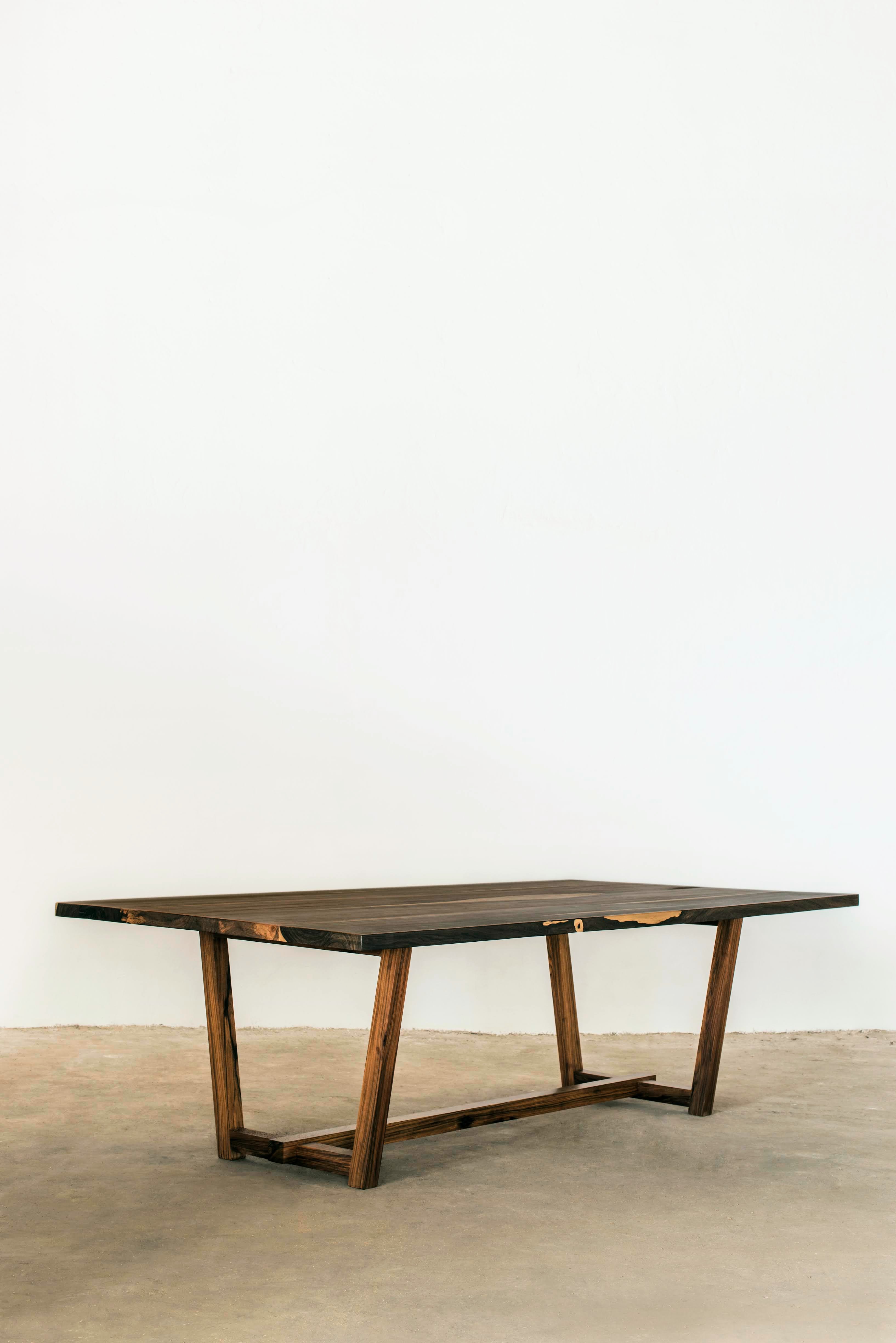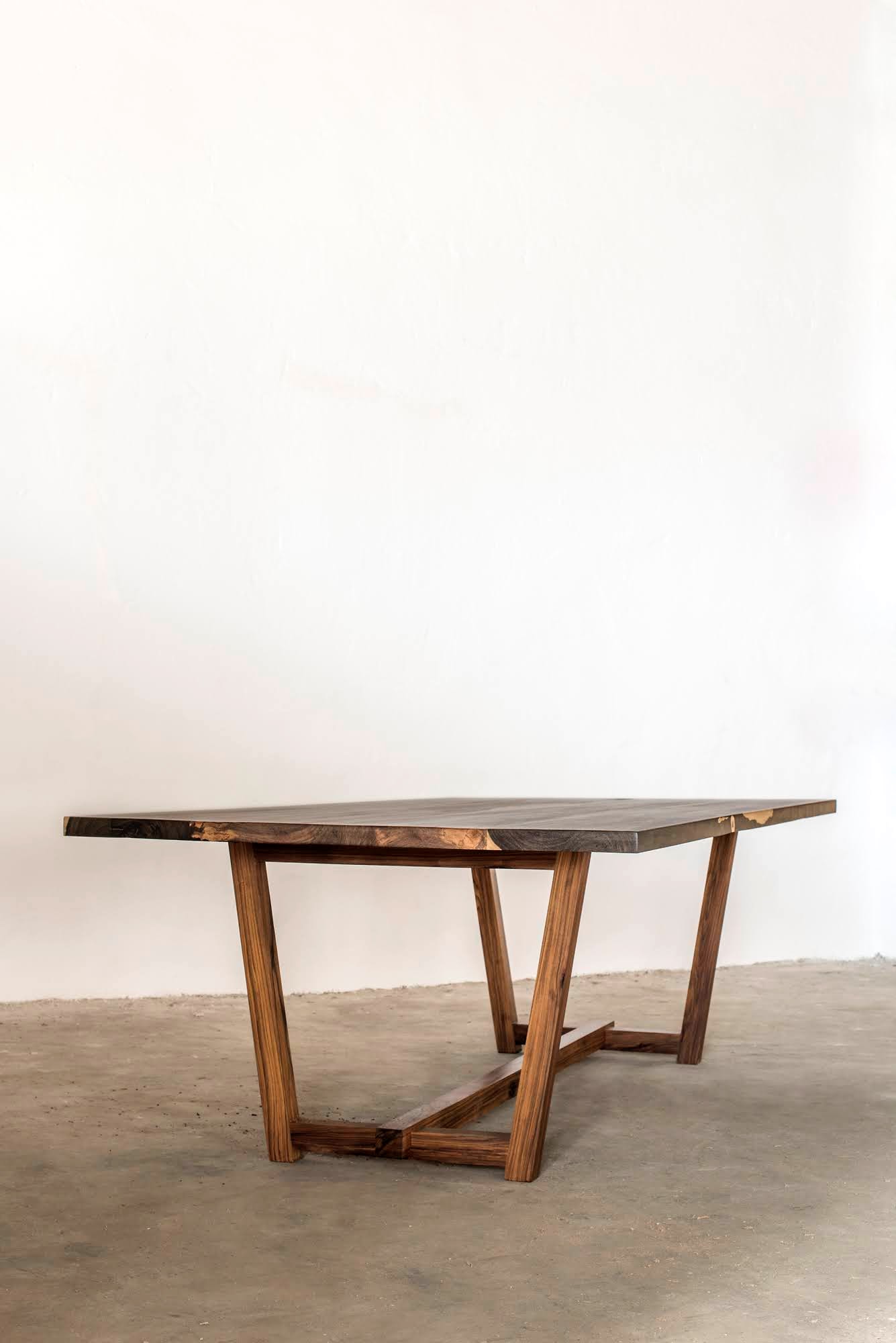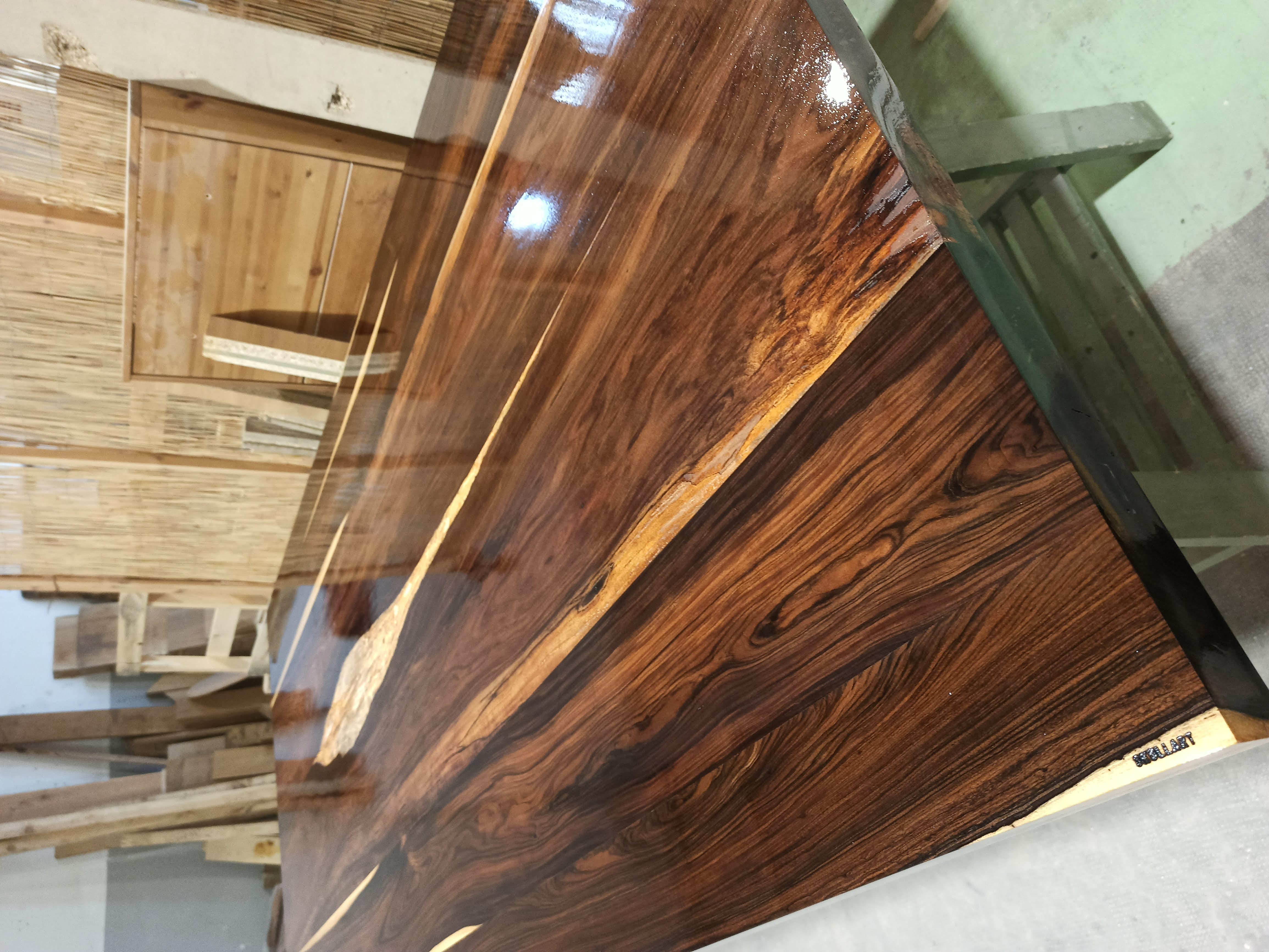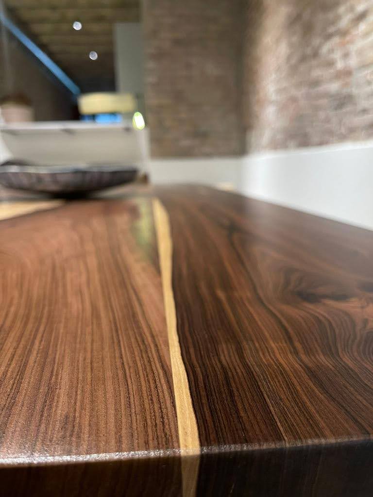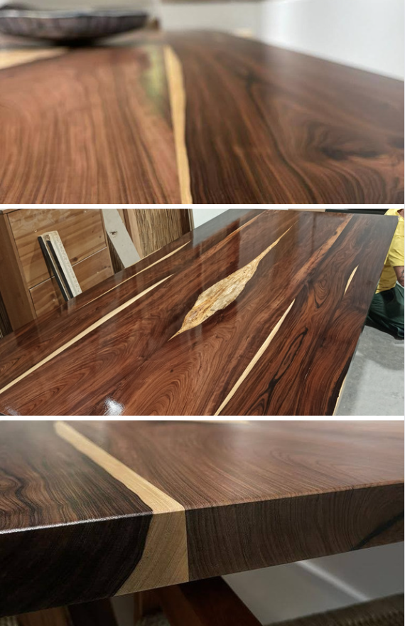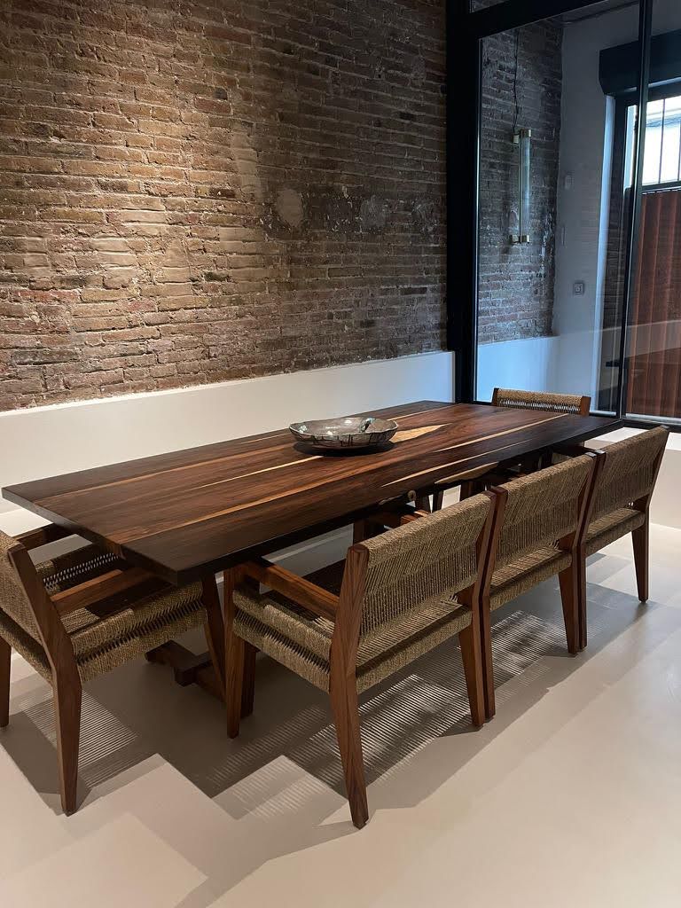 El proyecto ha sido un verdadero reto para mi. Este tipo de madera no es fácil de trabajar, por su naturaleza es muy densa y pesada, pero ha sido un éxito total. La peculiaridad de las tablas, seleccionadas de entre muchas para crear un diseño con vetas simétricas, ha dado el toque final a la pieza dándole mucha exclusividad. Las patas en madera completan un trabajo artesanal que nunca me hubiera imaginado hacer. — Para este trabajo he utilizado el cepillo/regrueso escuadradora e ingletadora y muchísimas lijas :) — Este objeto es para Luís, no un cliente cualquiera. Es alguien que ha apreciado desde el primer segundo mi potencial y pasión para crear una pieza exclusiva.