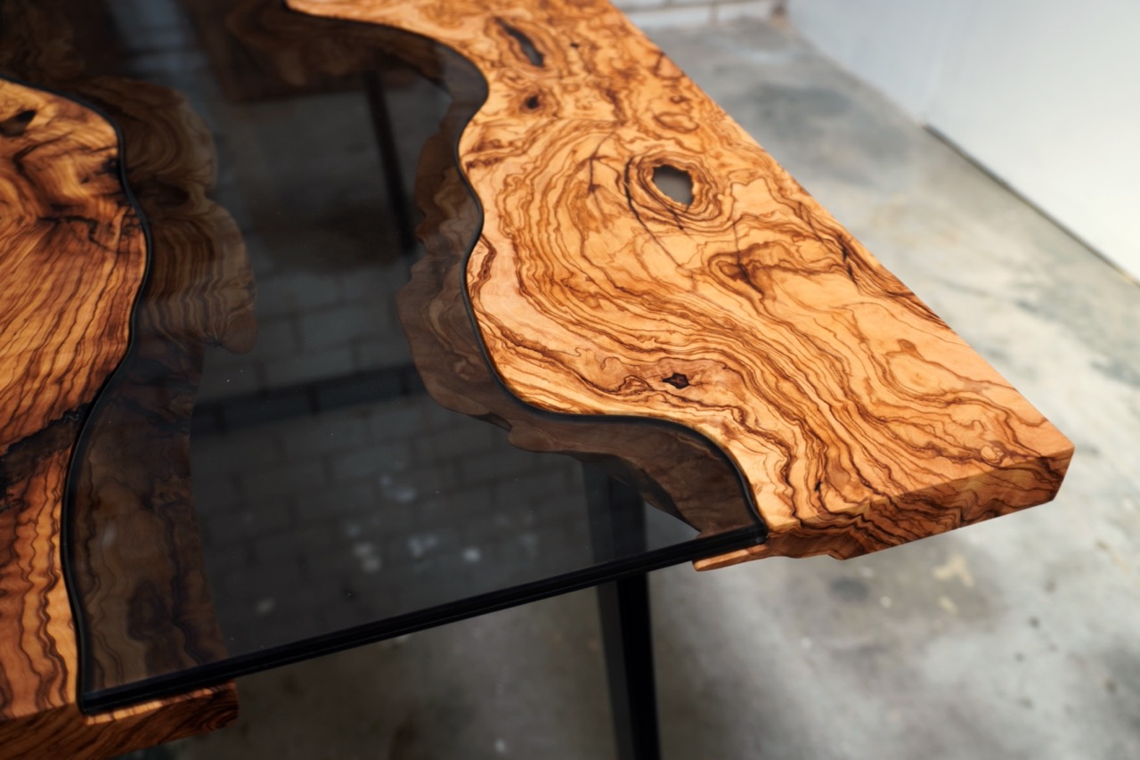Este proyecto se basa en el origen de Undra woodworks y mi pasión por la madera. Se trata de una mesa realizada con madera de olivo centenario acompañada de un vidrio ahumado diseñado con la forma que daba el canto vivo de la madera y acompañado de una estructura de acero lacada en negro. Se trata de un diseño en el que fusiono una madera noble y cálida con la modernidad del vidrio diseñado especialmente para la mesa.