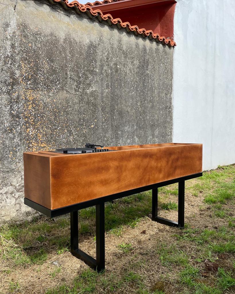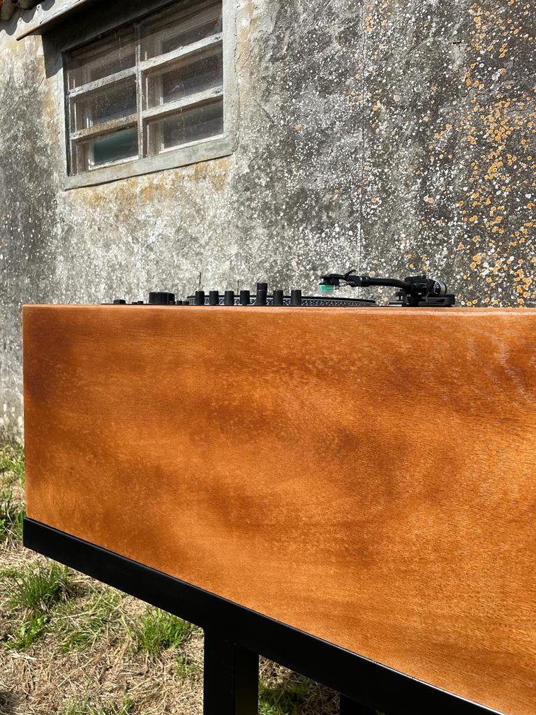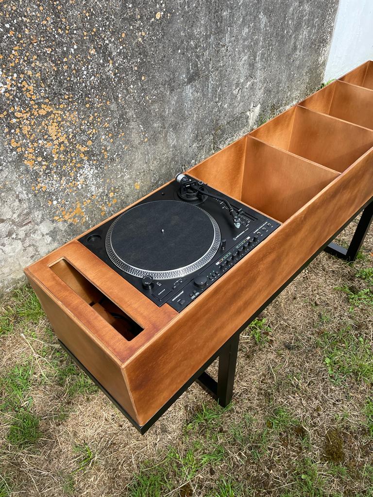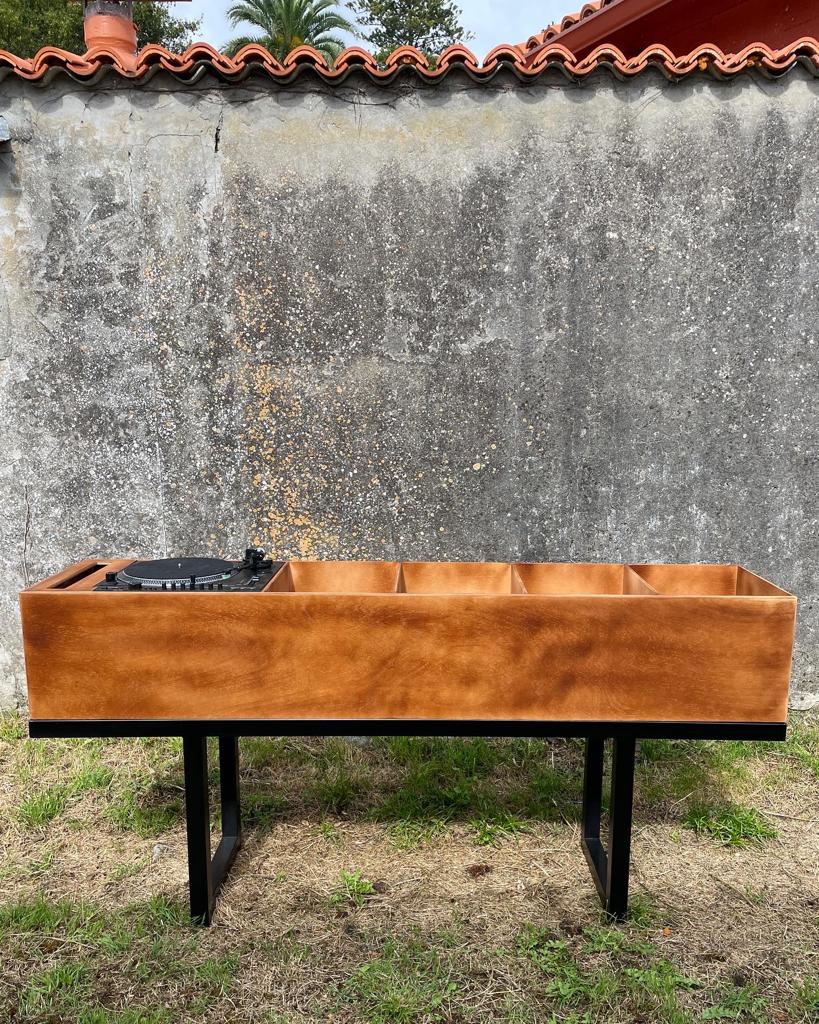 Este mueble se hizo para un bar que abrió recientemente en A Coruña, enfocado en la venta de vinilos con la idea de poder escucharlos "in situ" en el local. Es un diseño propio, manufacturado en madera de contrachapado que reposa sobre una sencilla estructura en metal. Se hicieron dos unidades gemelas.