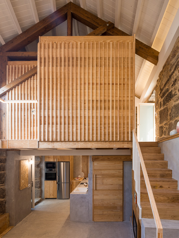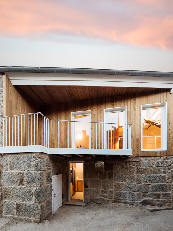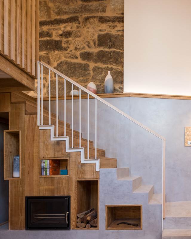 José Serrano, Pepe de Saa, se encontraba en cama cuando sonó el teléfono. Era su primo Marcos, que le advirtió que el pueblo estaba en llamas; pudo huir de su vivienda, mientras veía como llamas de 10m arrasaban el pueblo, durante la ola de incendios que asoló Galicia en Octubre de 2017. Perdió su vivienda, sus libros de arte, sus recuerdos de la emigración en Brasil, y todas las fotografías familiares… Se recupera la vivienda de la manera más respetuosa con el patrimonio y con la memoria del lugar, después del incendio que la destruyó por completo. Después de hablar con el propietario, y dadas a limitaciones económicas, se optó por un programa mínimo, situando en planta baja la zona de día, formada por una única estancia diáfana con cocina y salón comedor. Del mismo modo, se incorpora un baño accesible, dotado de ducha, inodoro y lavamanos. En la estancia de trastero se mantiene el uso previo, incorporándose el área de lavandería en la estancia de menor dimensión, ubicada bajo el corredor exterior. Al superar el propietario los ochenta años de edad, se reserva un área en el salón comedor por sí en el futuro tuviera mermada su capacidad motriz. Podría desarrollar su vida únicamente en la planta baja, al contar con todos los servicios necesarios, no precisando ninguna intervención específica de mejora de la accesibilidad. En la planta primera, desde un recibidor común en el patín, se articula la zona de noche, formada por la antigua lareira, destinada al dormitorio secundario, para cuando alguno de los hermanos del propietario lo visita.