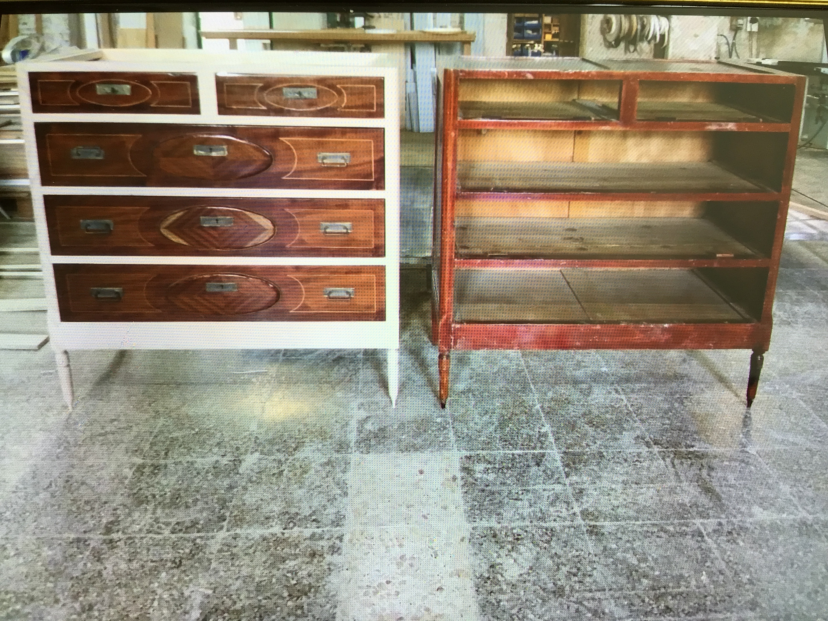 El cliente quería conservar una cómoda que era de sus antepasados y estaba en mal estado , Por lo que hizo un mueble igual al original .