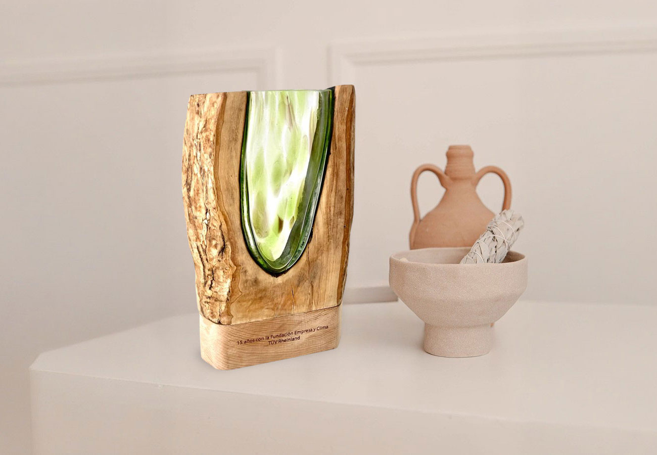 En Simbolika Awards diseñamos y fabricamos trofeos y reconocimientos sostenibles de autor. Piezas únicas con diseños personalizados, realizadas en madera, cartón, vidrio y metal. Empleamos materiales naturales, certificados o recuperados.