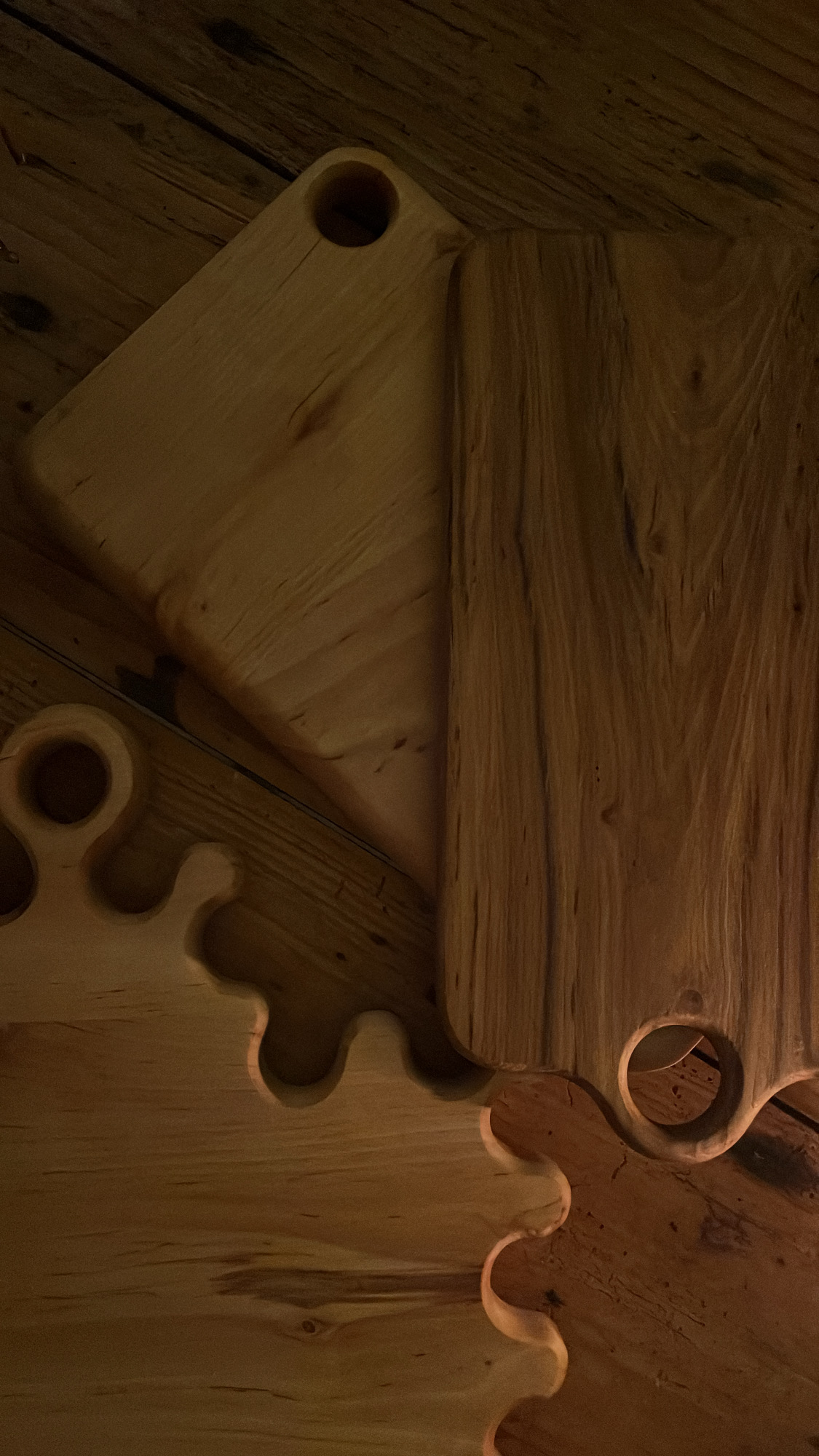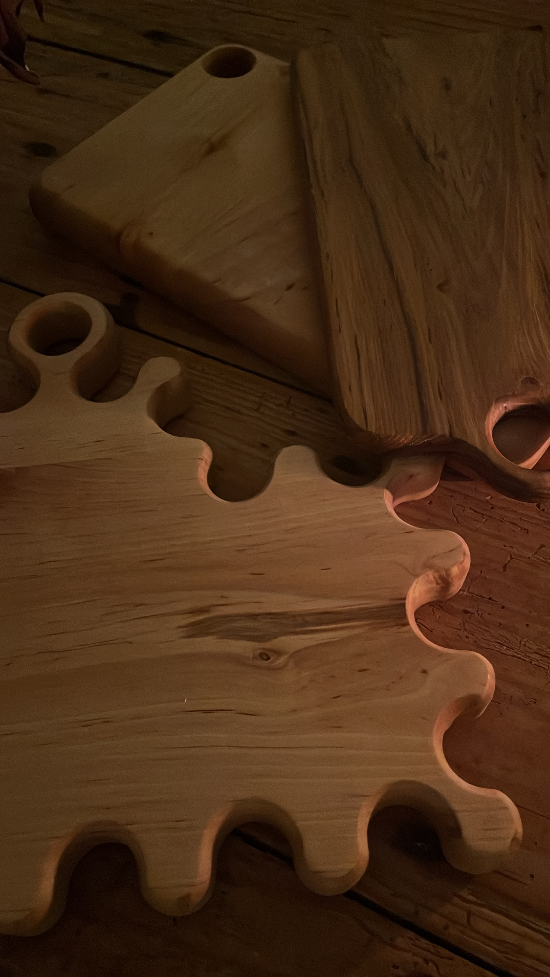 Tablas de cortar/ tablas de presentación hechas a partir de piezas que nos han ido sobrando de proyectos anteriores. Cada tabla es única, con un diseño y tamaño diferente. Trabajadas a partir de tipos de madera diferentes. Siempre elaboradas con madera local.