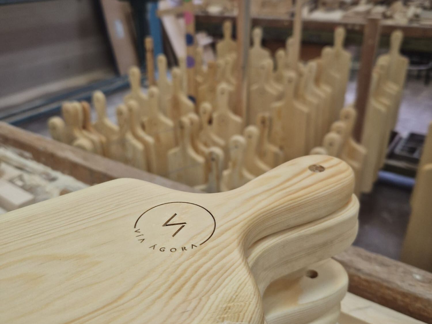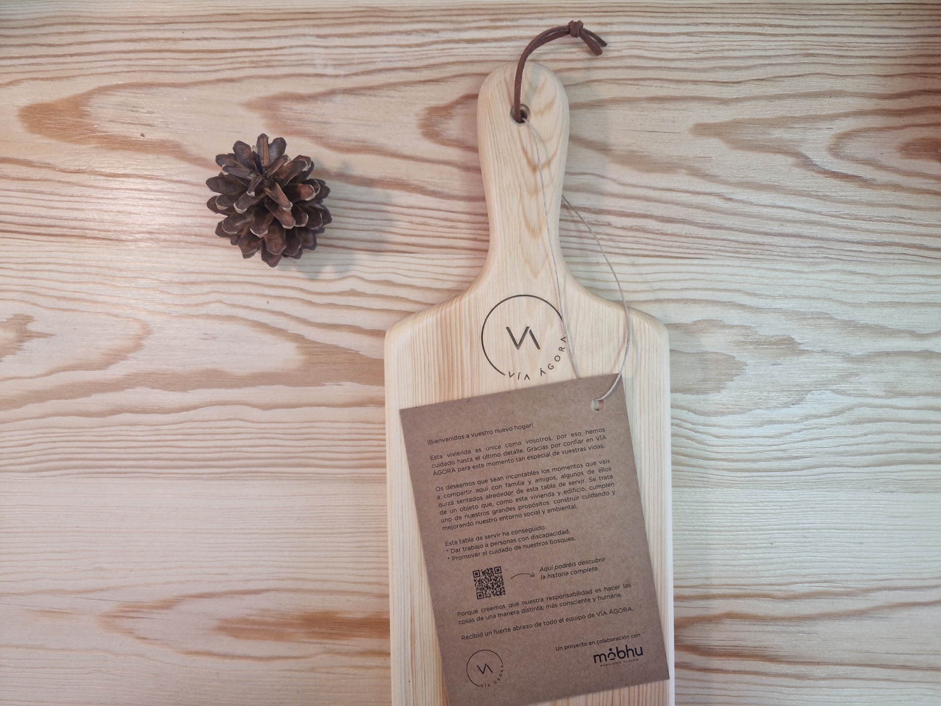 Proyecto desarrollado de la mano de la Fundación Gómez-Pintado y Vía Ágora. En Mobhu diseñamos y fabricamos estas tablas de servir que serían entregadas como obsequio a todxs lxs compradorxs de las viviendas de una nuevo edificio construido por Vía Ágora. Las fabricamos en el centro ocupacional de la asociación ASPADEC y con madera de pino laricio certificada FSC procedente de los montes de Cuenca. Descubre cómo lo hicimos aquí: https://viaagora.com/unahistoriaunica