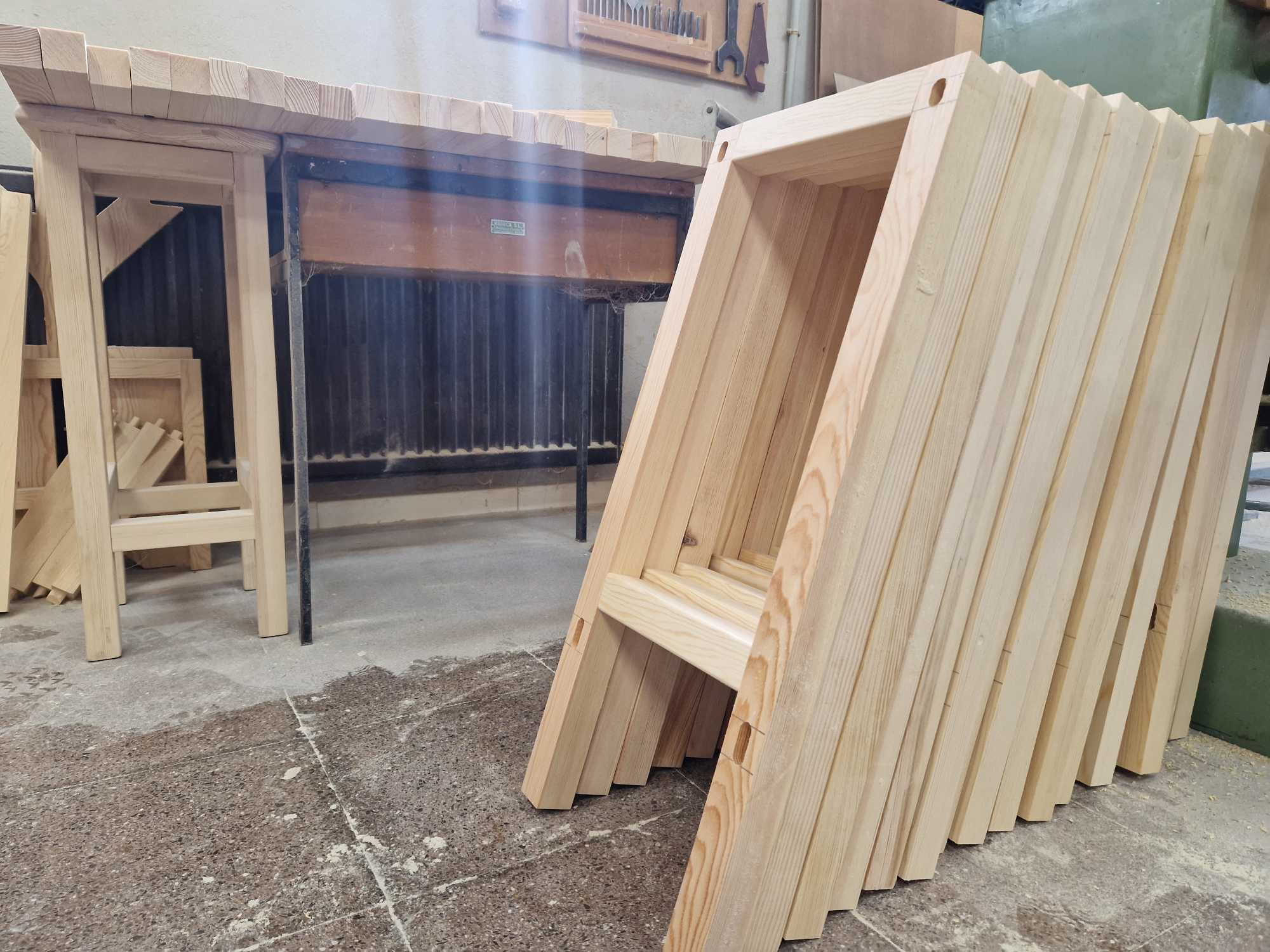 Estos 25 taburetes los fabricamos para un bar muy auténtico de Cuenca, el Rumi Patapi. Gracias a la alianza que creamos entre todxs, estos taburetes consiguieron dar una oportunidad de trabajo a personas con discapacidad y también proteger nuestros tan preciados bosques. Lo que conseguimos fue: Generar 4 semanas de trabajo para el taller ocupacional de la asociación ASPADEC. Gestionar de manera responsable 3.491m2 de bosque. Capturar 350kg de CO2.