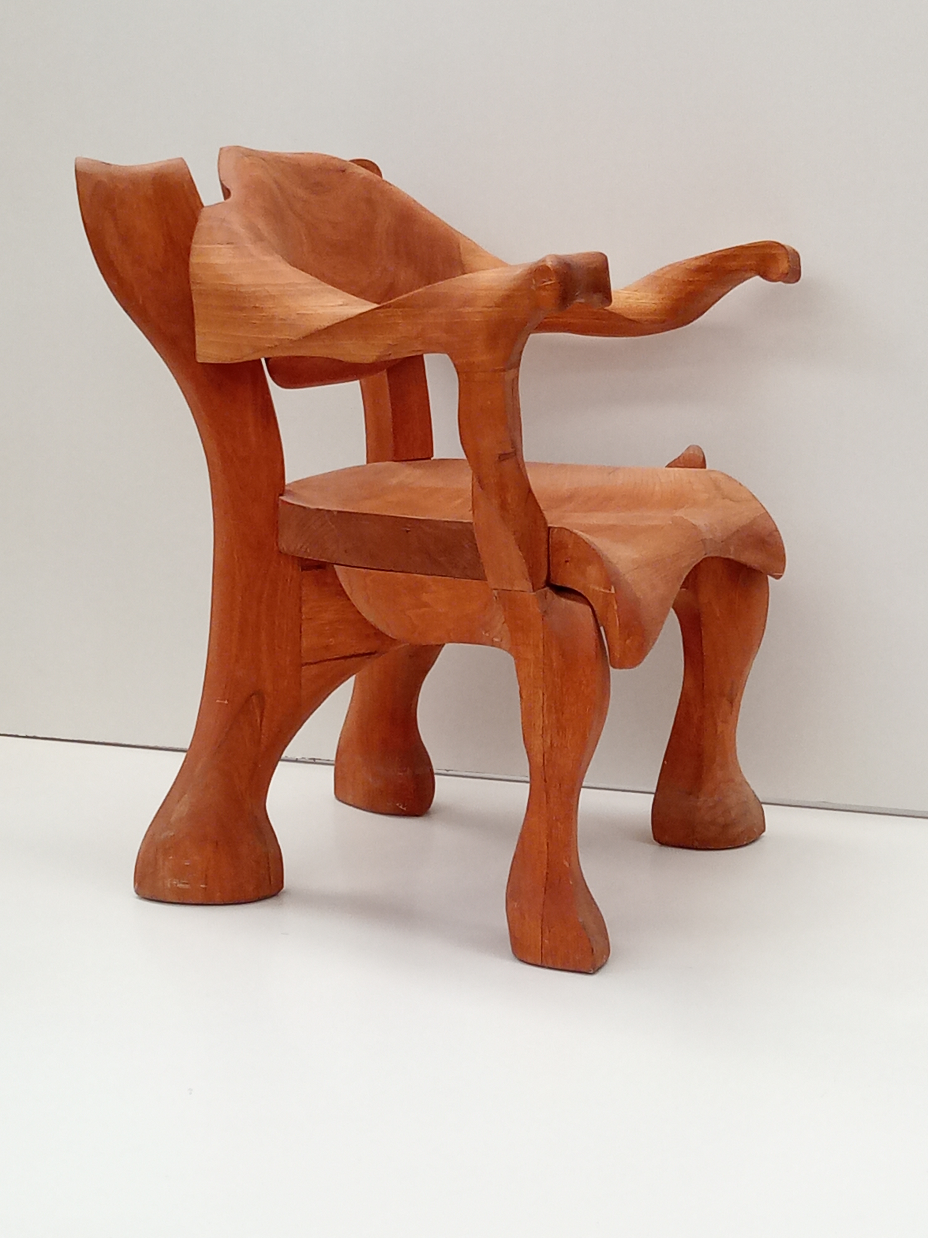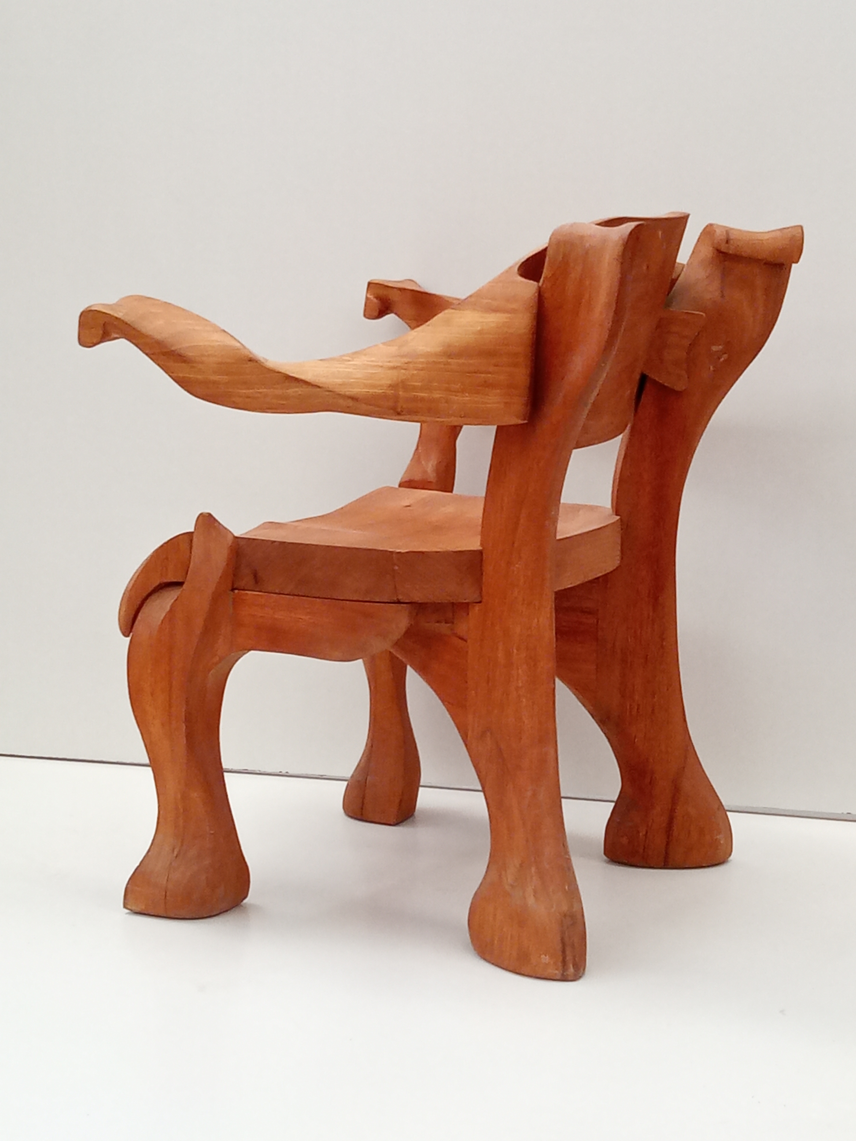 Torceado deriva de torcear, liar Puros Habanos en Cuba. Como los Cigarros está liado, las curvas dan forma a su estructura y una "Vitola" es el respaldo y los apoyabrazos, con un solo soporte lateral para favorecer la movilidad del usuario. Tallado en madera de Framiré y acabado con aceite de linaza y cera de abeja o natural. Puede ser desmontable para que los desplazamientos sean más cómodos o de una sola pieza.