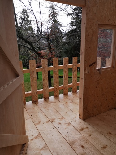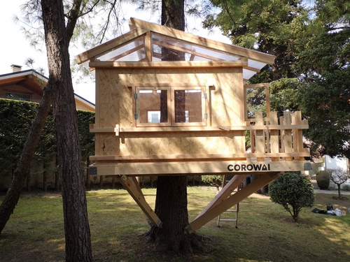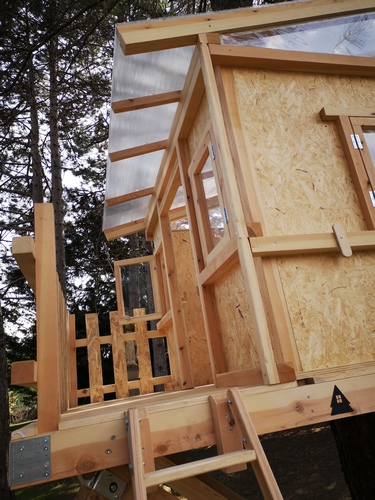 En este proyecto, partimos de la base de nuestro modelo por excelencia (Etxola) y le hicimos algunas modificaciones ampliándola con un pequeño balcón hasta los los 6m2 útiles. La cabaña era para una niña, por lo que incluimos una puerta vertical y una escalera de madera para acceder al espacio. Además, con el techo traslucido disfrutara de una espacio super luminoso.
