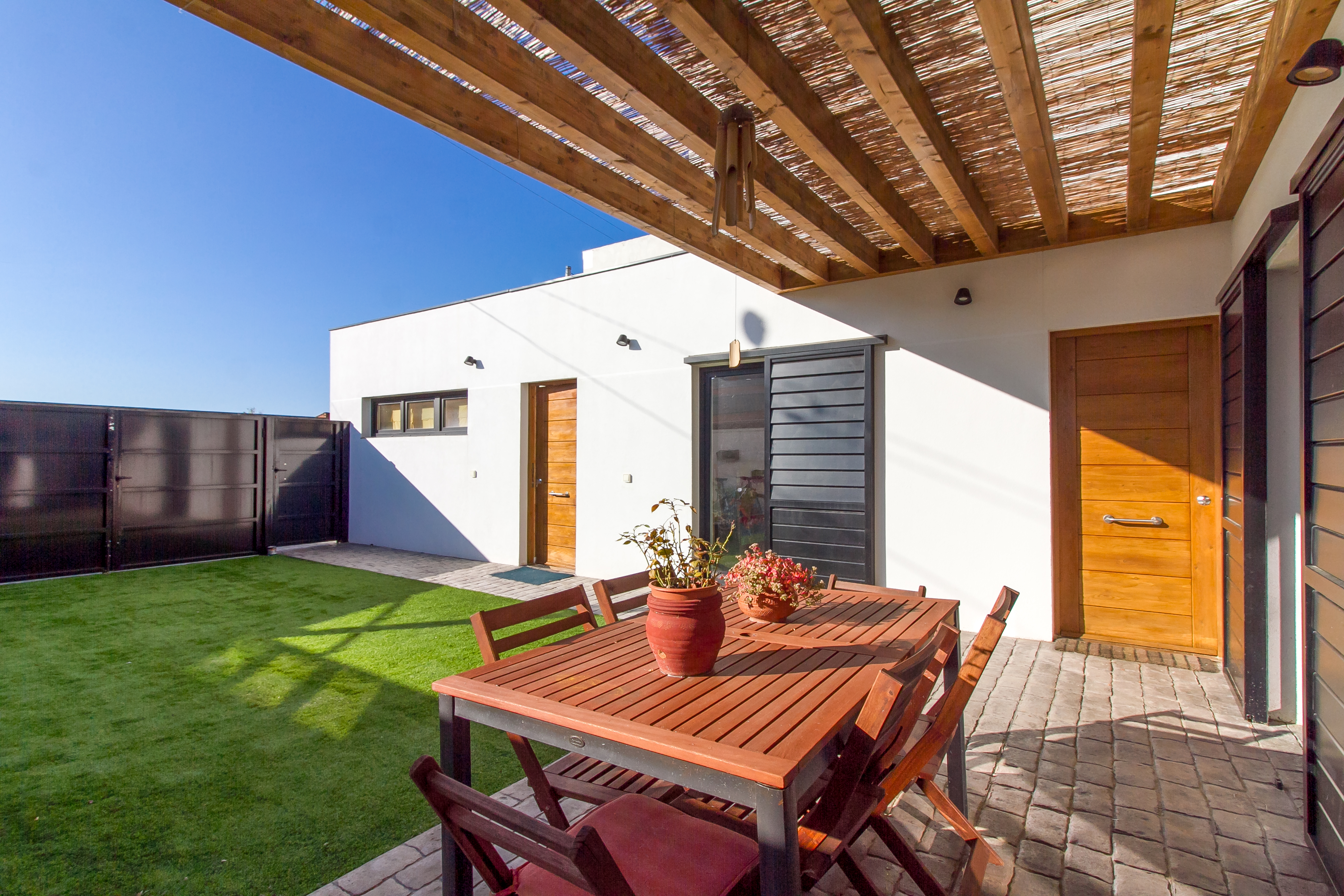 Vivienda Unifamiliar con estructura de entramado ligero de madera, ejecutada in situ mediante sistema estructural de paneles prefabricados. Acabado de mortero monocapa
