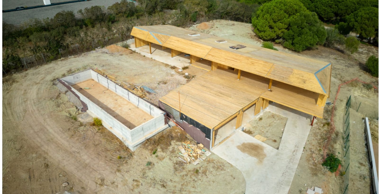 La premisa principal del encargo consistía en una vivienda eficiente energéticamente, en contraste con el resto de viviendas del entorno. Estas viviendas, de corte “contemporáneo”, están resueltas todas ellas con el mismo patrón de manera más o menos afortunada: cajas de hormigón y enormes cristaleras, sin importar orientaciones ni exigencias climáticas. El resultado es un edificio bien adaptado a una topografía compleja, con un semisótano y una piscina que funcionan además como muros de contención. Esta distribución permite la creación de uan gran terraza, principal espacio exterior accesible desde todas las estancias principales de la vivienda. La calidad de los espacios interiores se refuerza con la amplitud que permite el uso para la estructura de madera contralaminada (CLT), y la altura de una cubierta inclinada a dos aguas, rematada en el exterior con plancha de zinc.