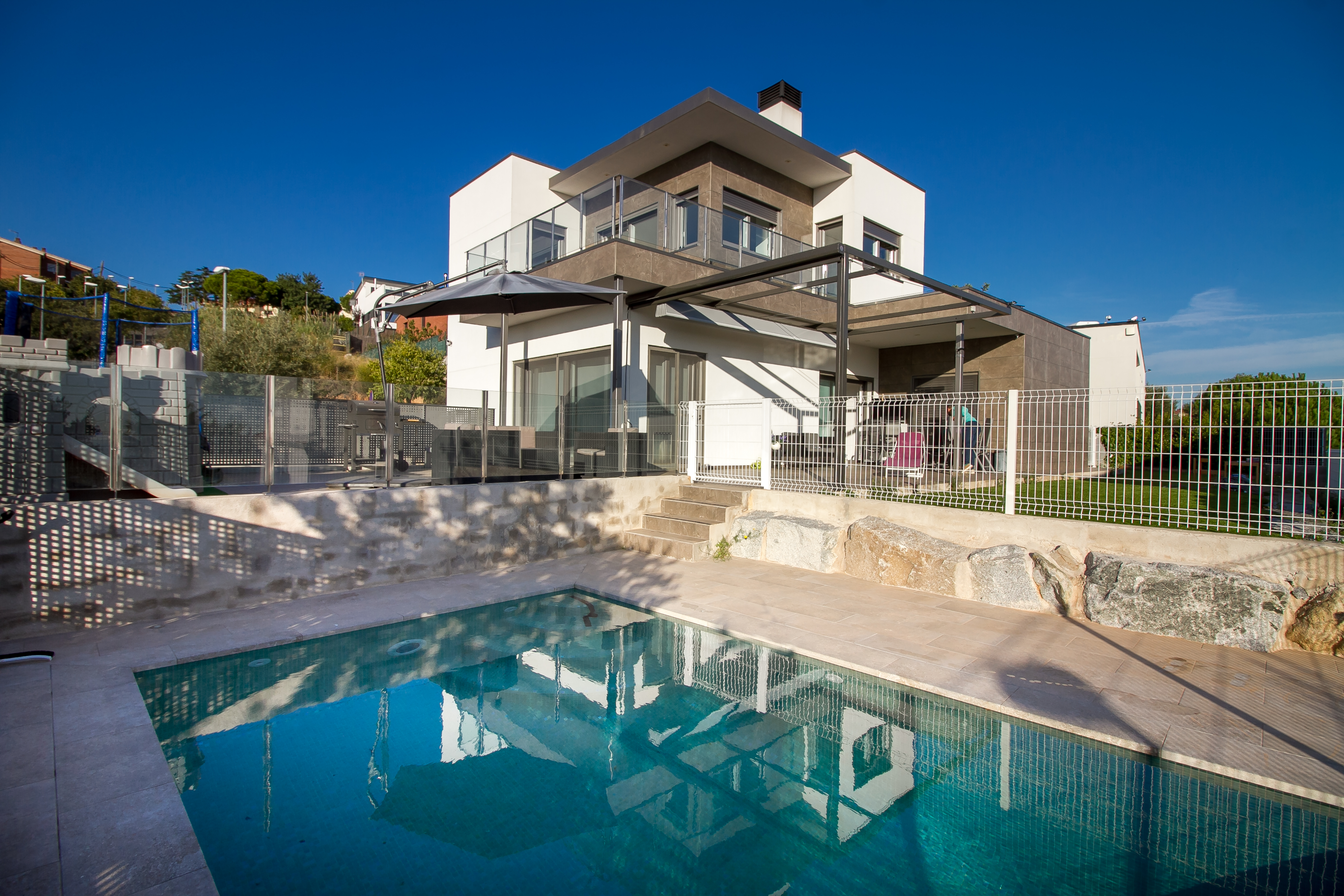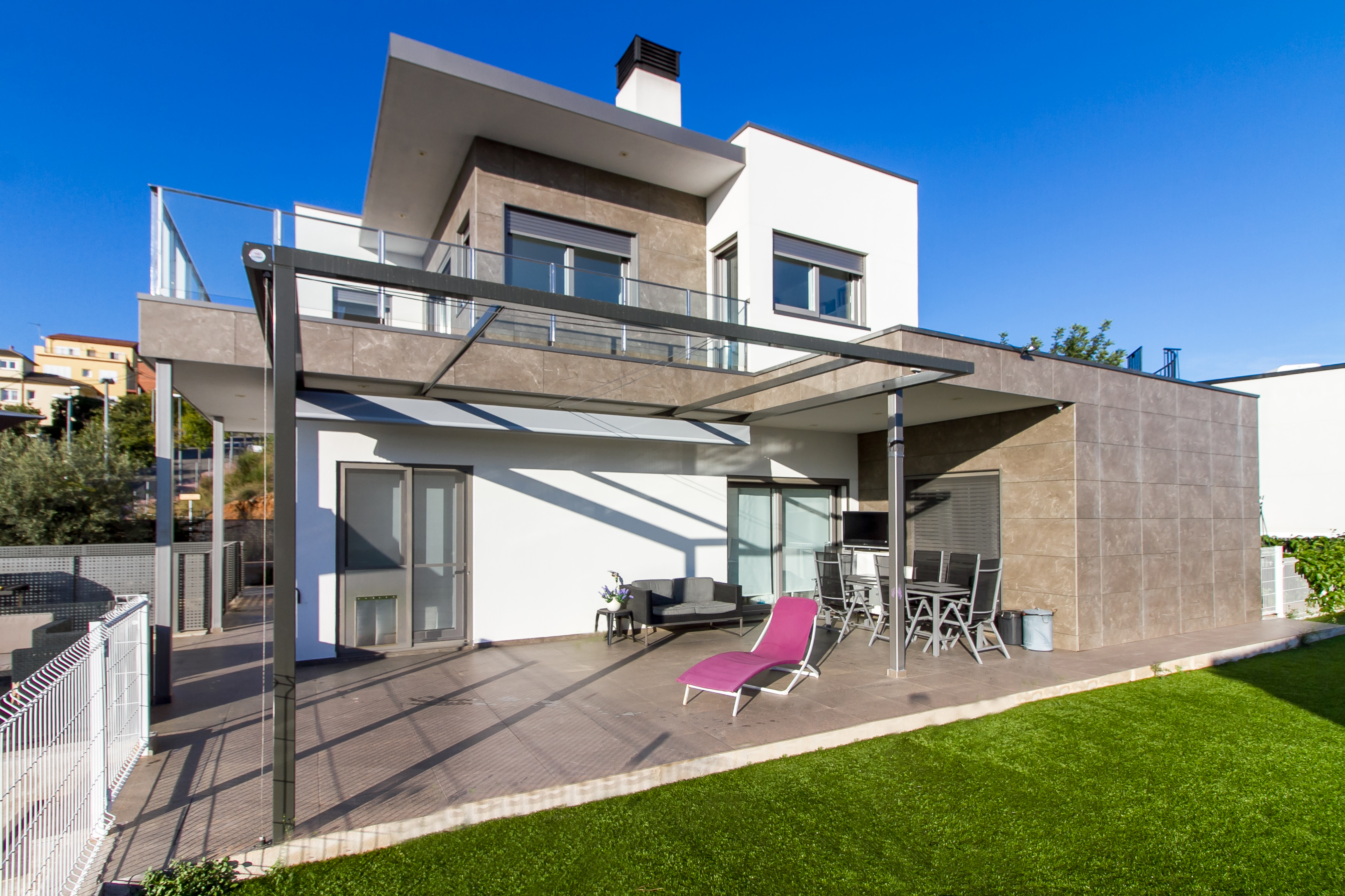 Vivienda Unifamiliar con estructura de entramado ligero de madera, ejecutada in situ mediante sistema estructural de paneles prefabricados. Acabado de mortero monocapa y aplacados pétreos discontinuos.