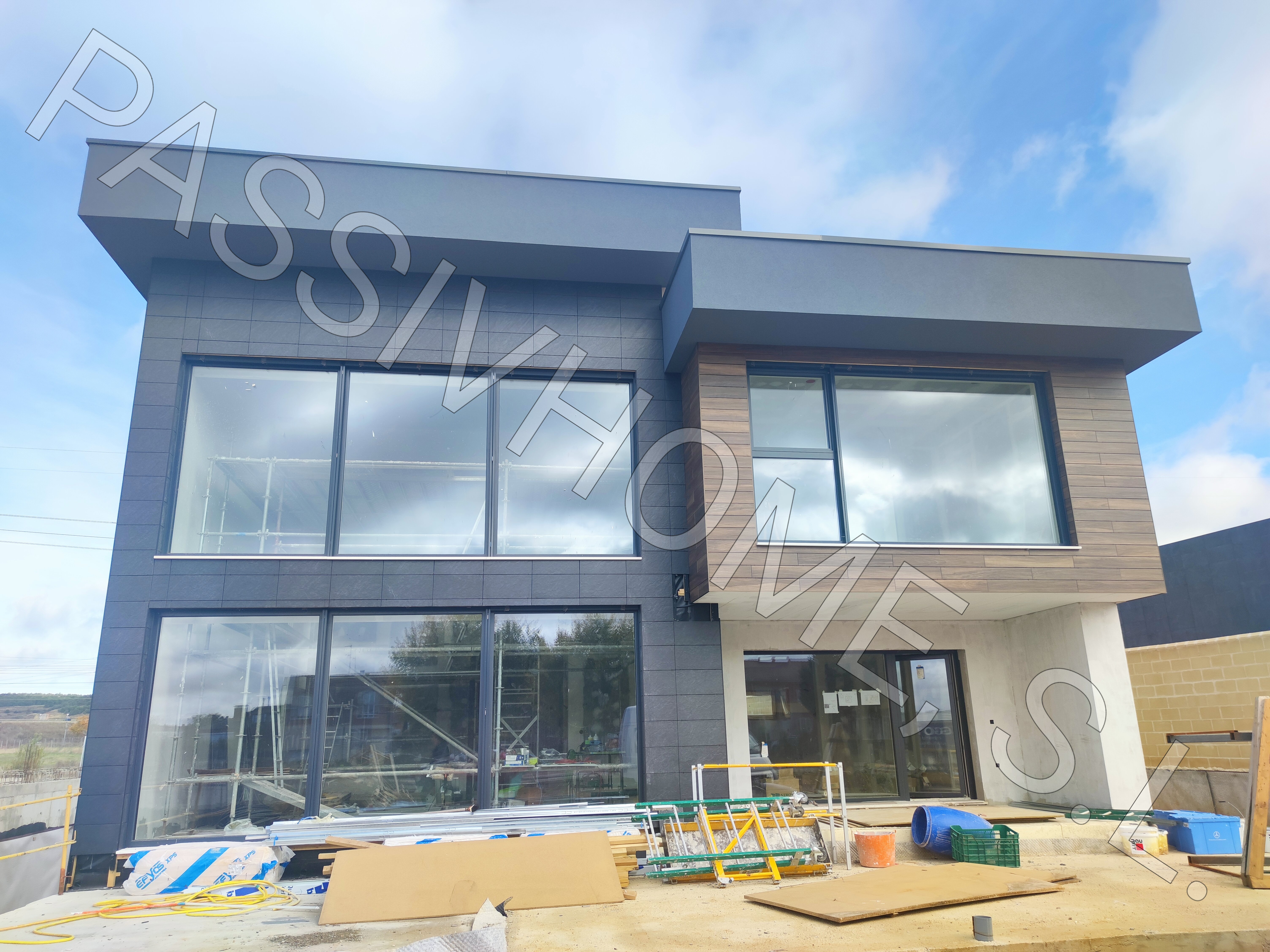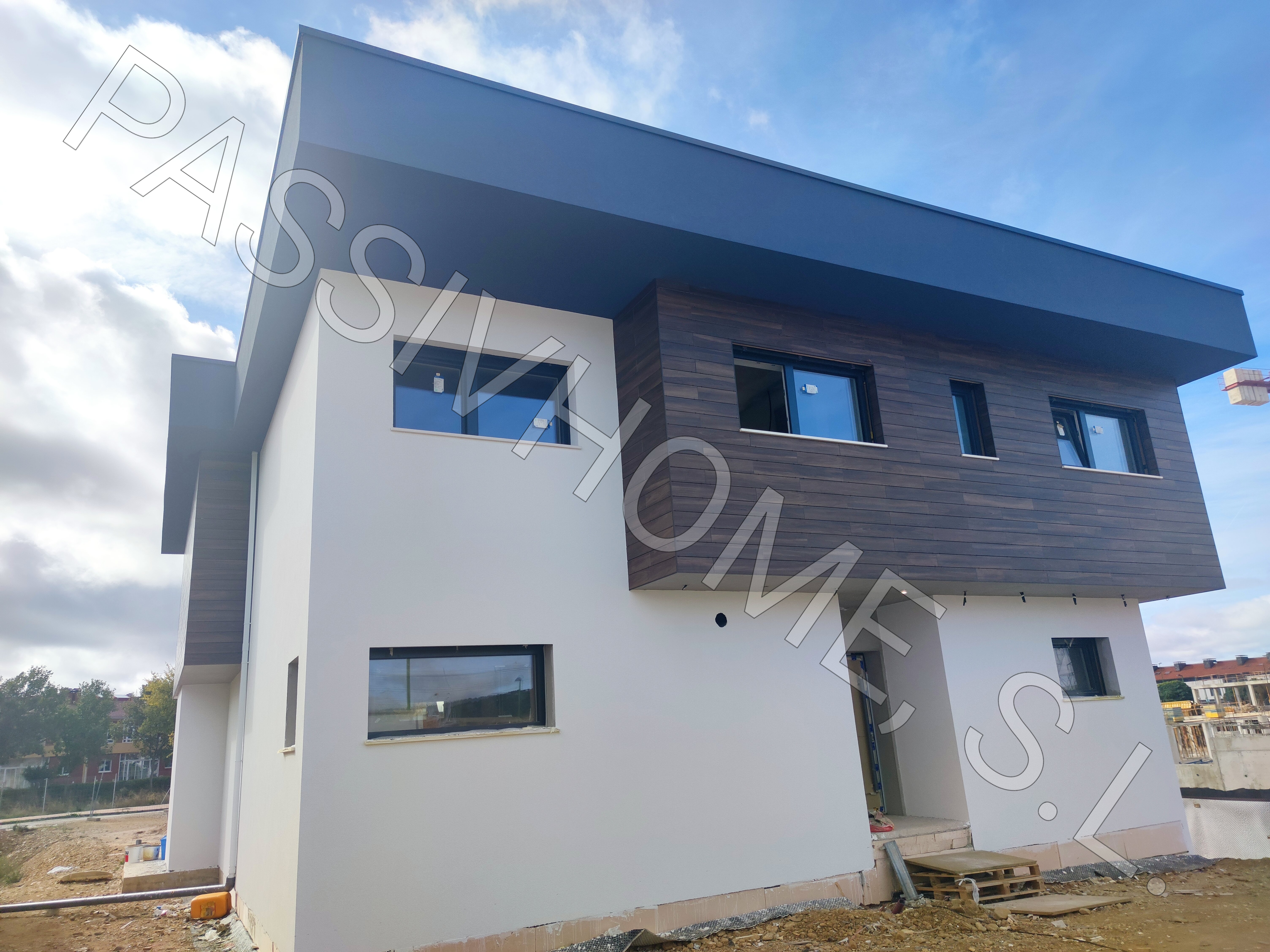 Constructora principal de Vivienda Passivhaus unifamiliar aislada, superficie construida de 488m2, planta sótano con garaje más dos plantas y porche.
