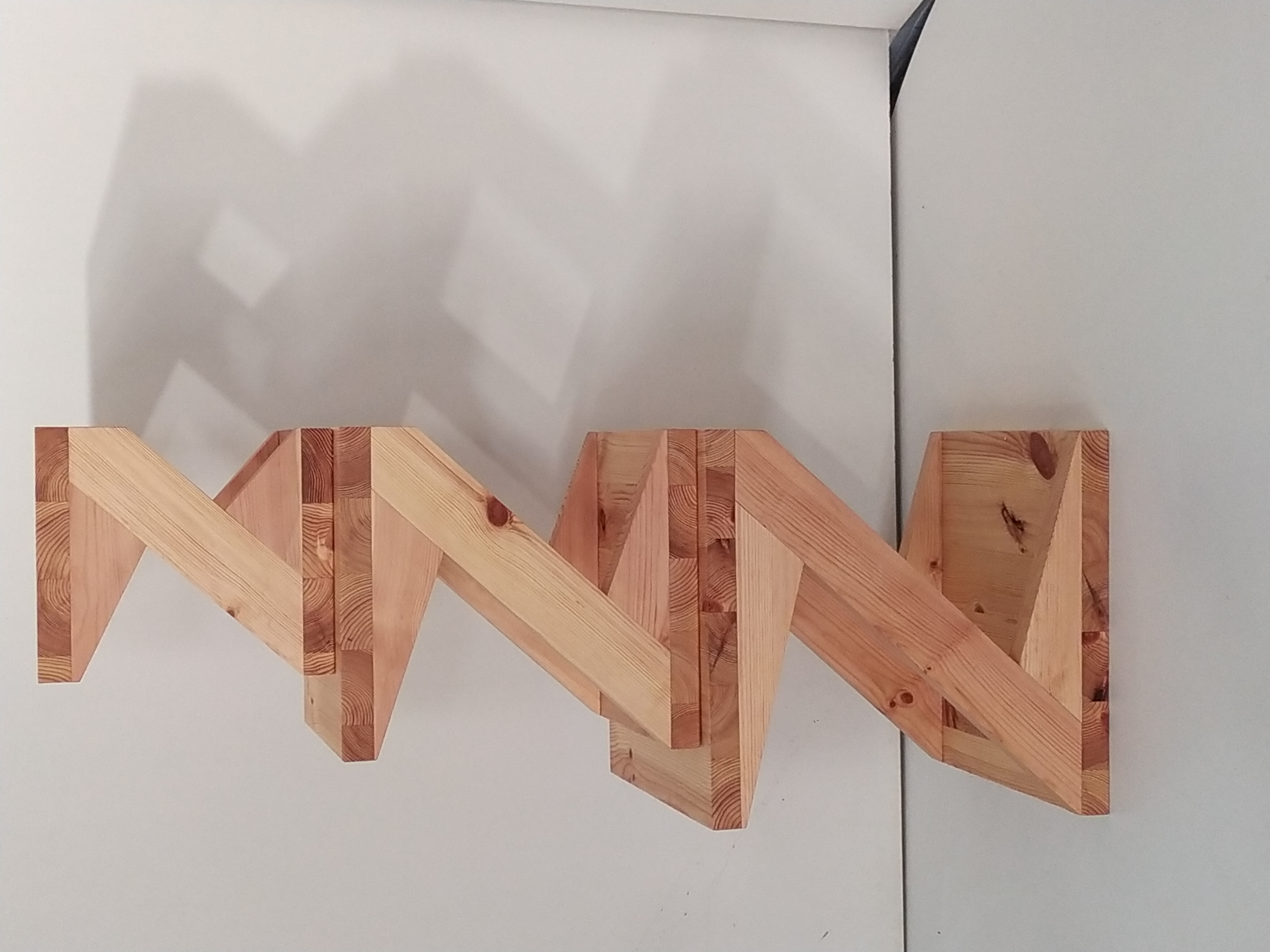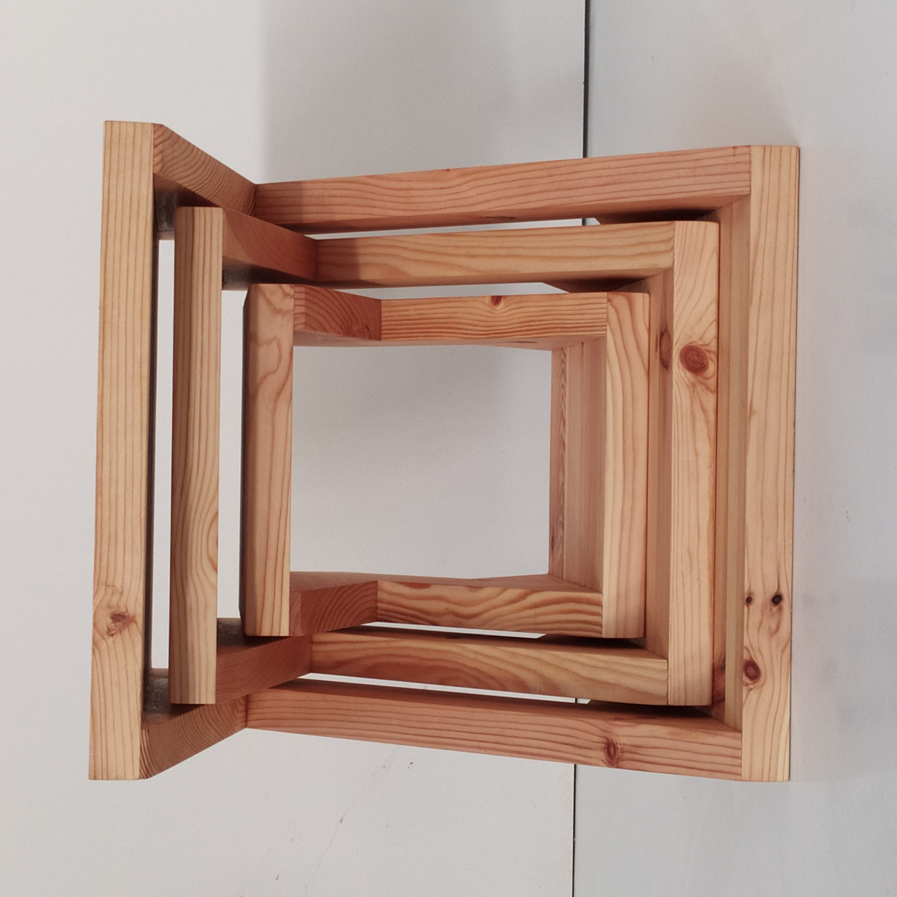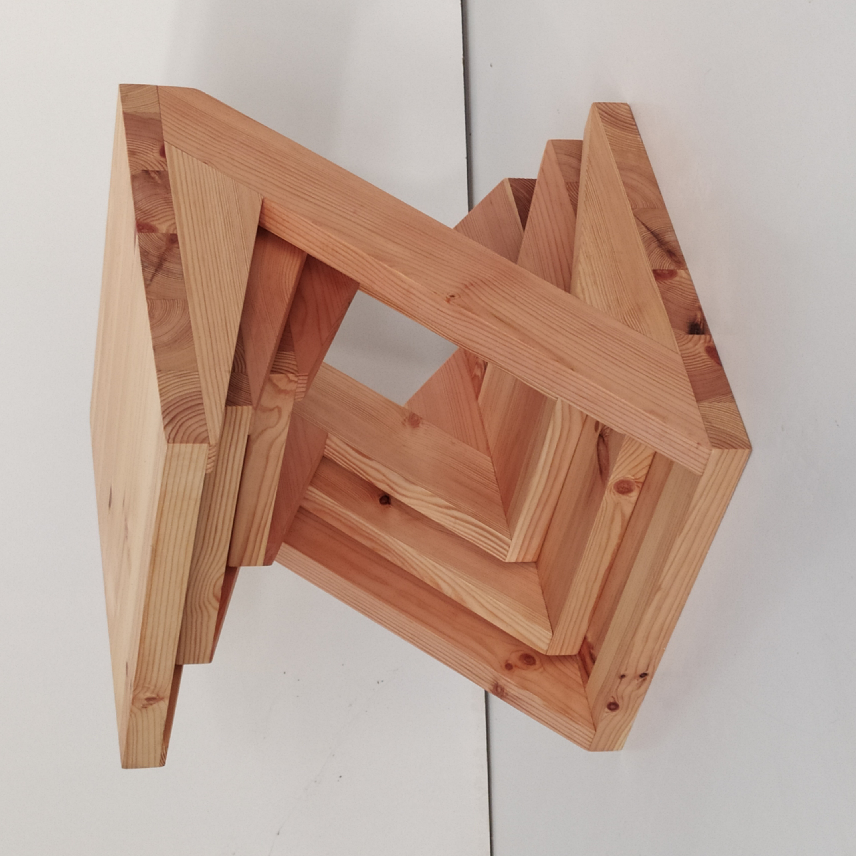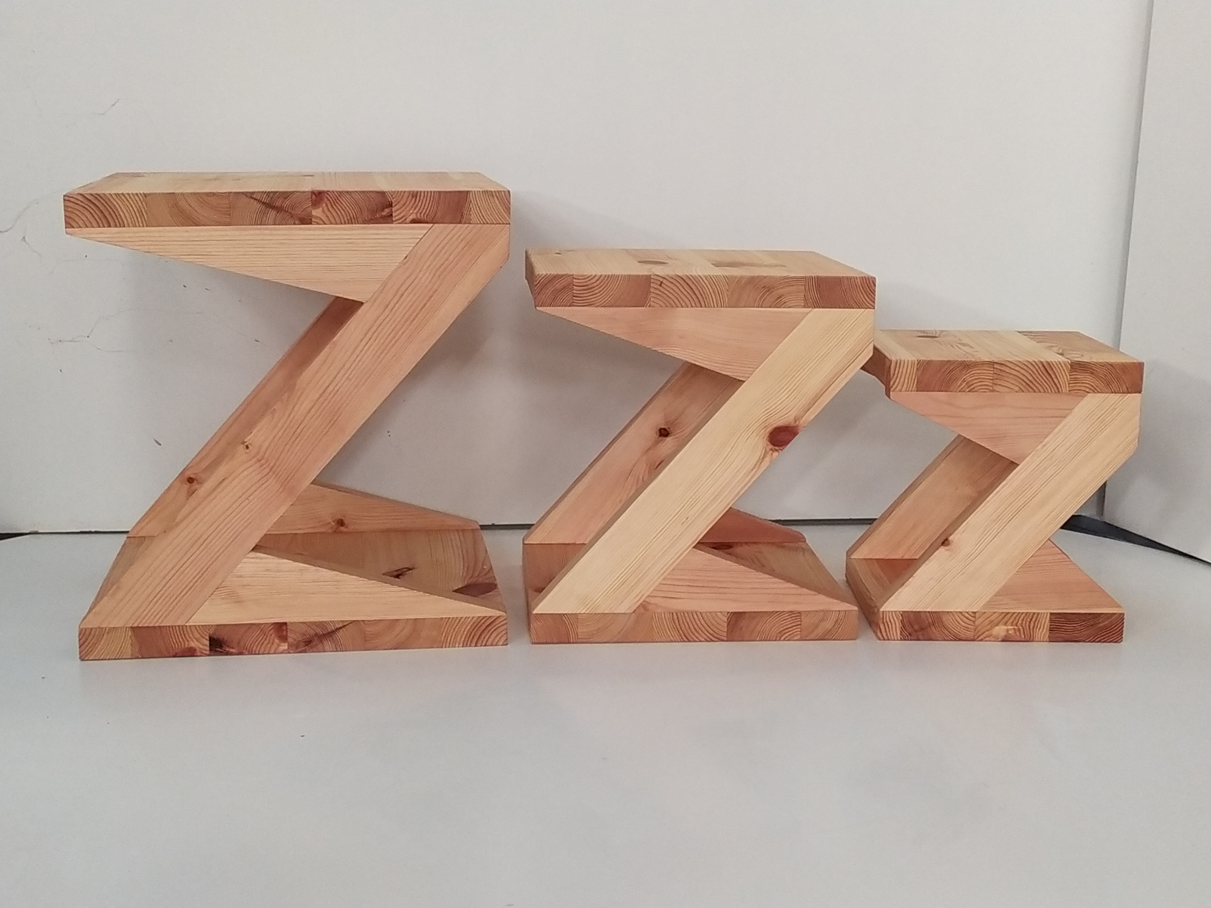 Basándome en una Z que tuvo muchas aceptación, esta colección la forman tres Z que son apilables y almacenables como muñecas rusas. La clienta es una enamorada de las plantas y quería tener un espacio donde hacer sus composiciones y a la vez que guardado no ocupase demasiado. Realizado en pino y acabado con aceite de linaza y cera de abeja. Se hace a medida de cada cliente. Estas piezas miden de alto, ancho y fondo: 55x50x50, 45x40x40 y 35x30x30. El grueso de la madera es de 3,7 cm.