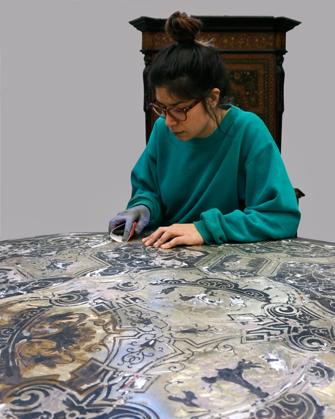 Restauradora especializada en boulle, carpintera